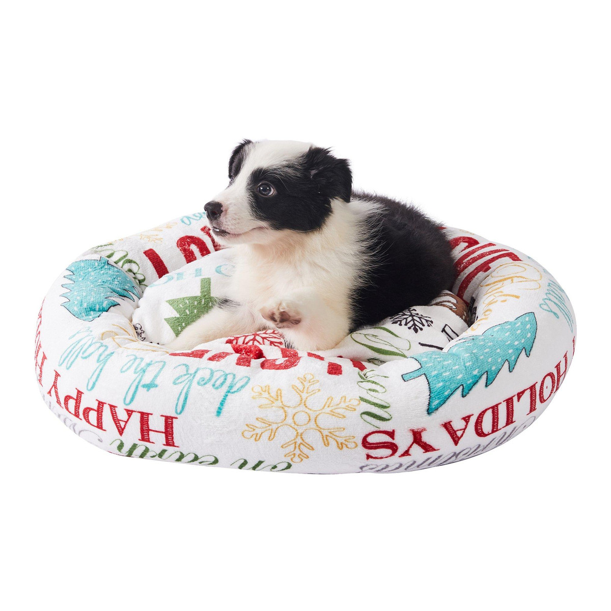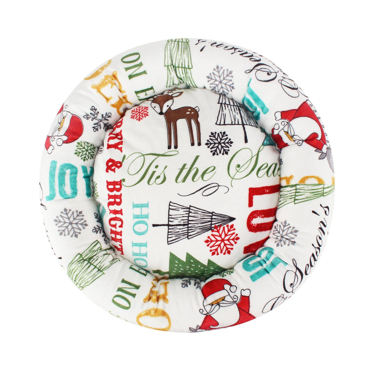 The Christmas Santa Claus Lane pet bed complements the Santa Claus Lane bedding collection but really stands alone as a haven for your pet during the holiday season. This pet bed features all the sweet sentiment of the holiday season with Santas, snowflakes and trees. This will become your pet’s haven whether in the bedroom, family room, living room or den. Made from 100% Polyester Velour, the pet bed is easy to care for. Measures 23in L x 14in W