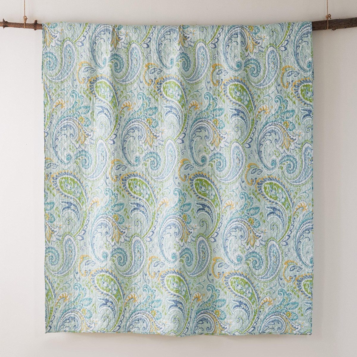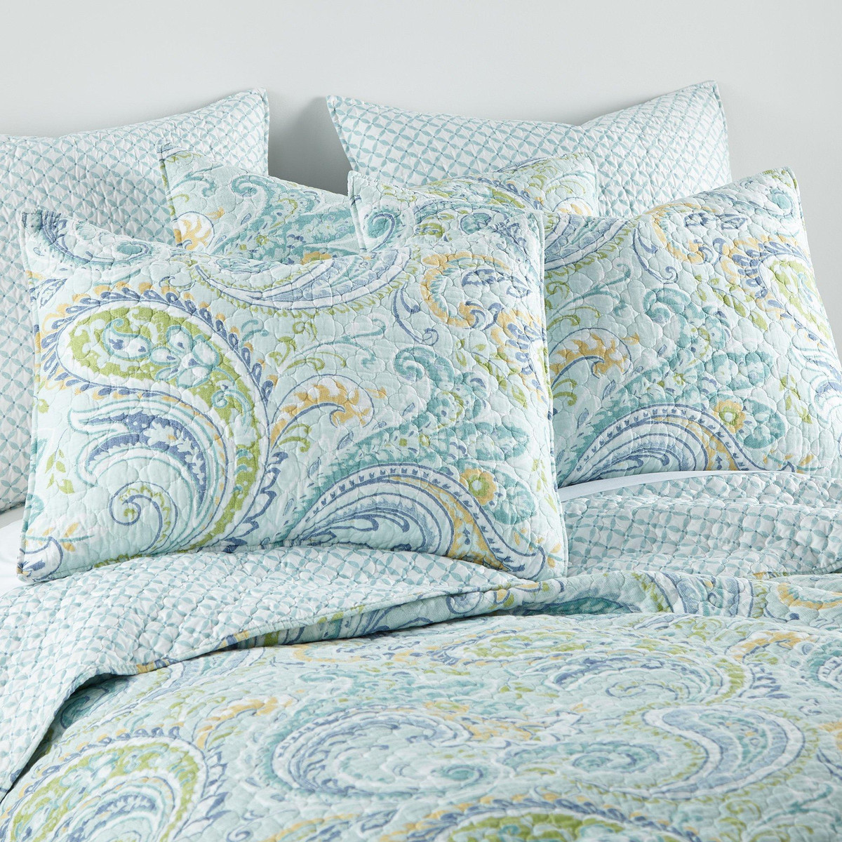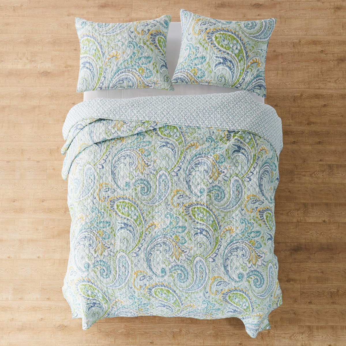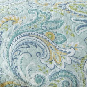Brighten your space with the Cortona Paisley Reversible Quilt Set by Levtex Home. Inspired by a spring garden, it features a vibrant paisley design in green, yellow, blue, and white on one side, and a fresh blue-and-white check pattern on the reverse. Made from the softest lightweight cotton and machine washable, this set brings color, comfort, and charm to your bedroom.