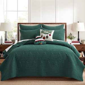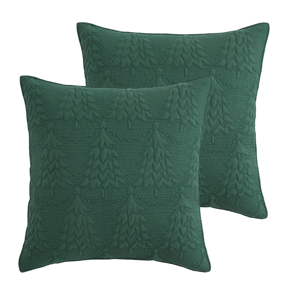 The O Christmas Tree Quilted Euro Sham Set of 2 by Levtex Home is inspired by green winter pines. Offered in green, this design will immediately transform your bedroom. These shams feature rows and rows of embossed christmas trees on a textured green ground. The Euro Sham Set of 2 (26 in.x26 in.) is microfiber, quilted with a cotton rich filler and is machine washable. Pillow inner not included.