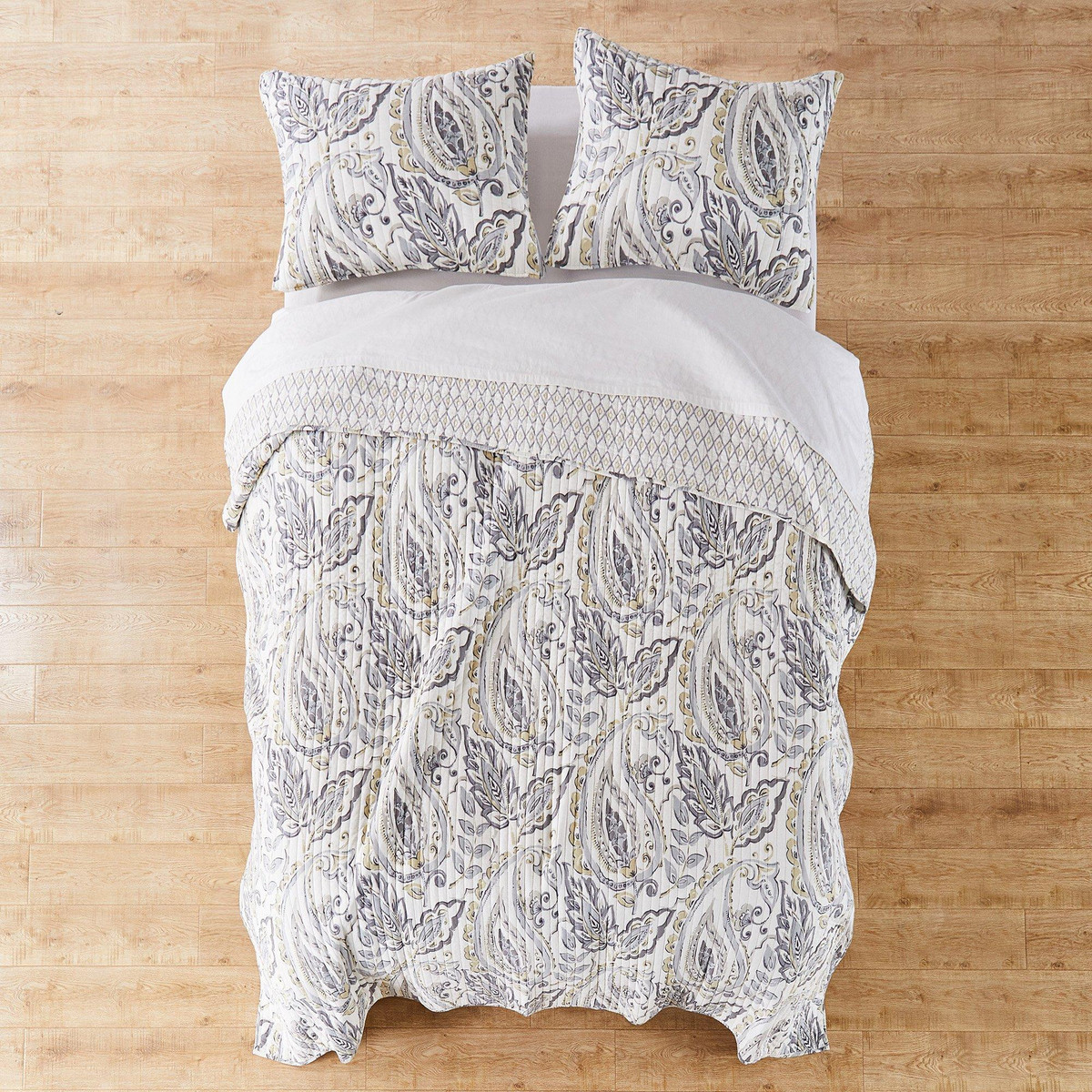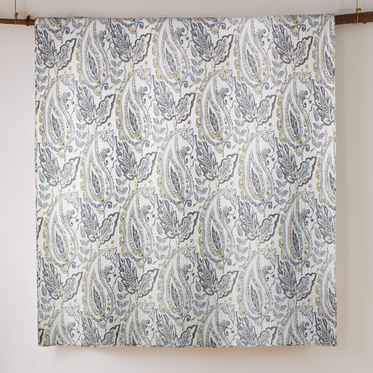Bring natures elegance into your home with the Tamsin Grey Reversible Quilt Set by Levtex Home. Crafted from the softest lightweight cotton, it features a swirling paisley and leaf design on one side and a diamond-in-diamond ikat pattern on the reverse. This versatile, machine-washable set offers comfort, style, and a serene, natural touch, perfect for refreshing your bedroom with effortless charm.