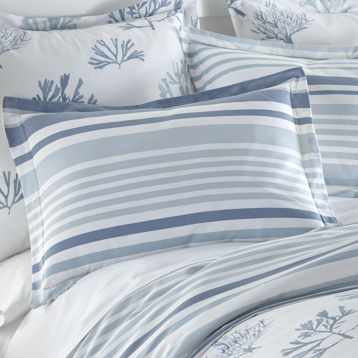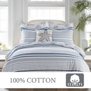 Escape to the coast with the Truro Duvet Cover Set by Levtex Home. Featuring a watercolor coral design in serene blues on crisp white, and a coastal stripe reverse, this set captures the essence of seaside living. Made from durable cotton and machine washable, it brings breezy comfort and ocean-inspired charm to your bedroom. Refresh your space with cool, coastal style.