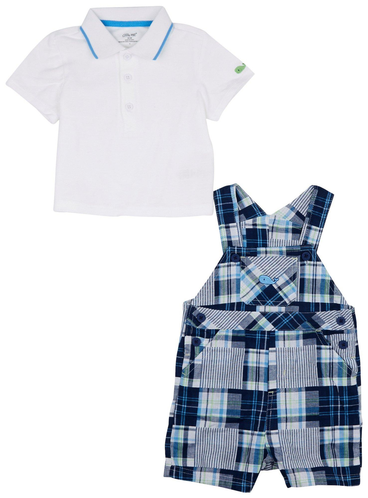 Little Me offers fabulous fashion for stylish little boys and girls. This 2-pc.set includes a pique polo top with 3 button plackets, and a pair of woven plaid Shortall.