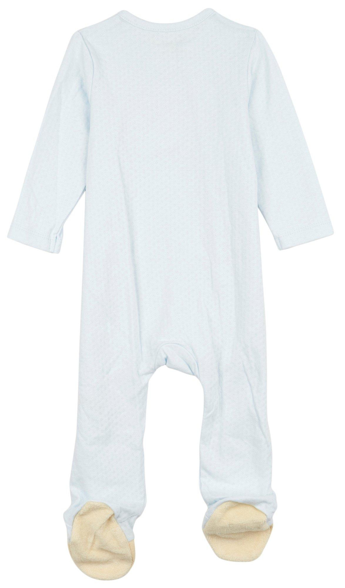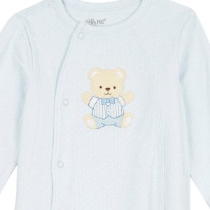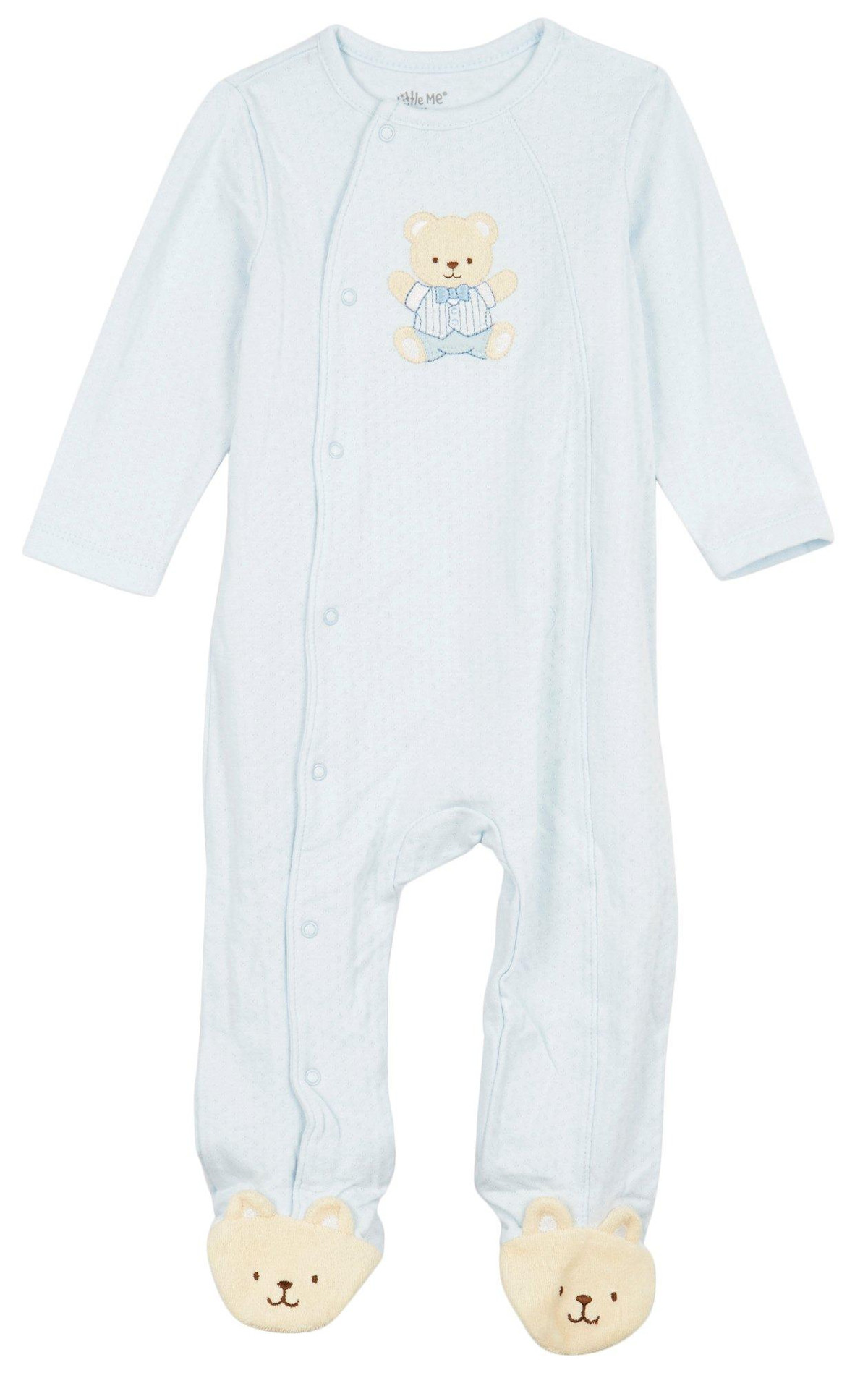 Introducing the Baby Boys Cute Bear Footed Sleeper from Little me, a charming bedtime outfit for your little one. This footed sleeper features an embroidered bear detail on the chest, full front snap button closure and soft fabric material.