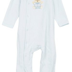 Introducing the Baby Boys Cute Bear Footed Sleeper from Little me, a charming bedtime outfit for your little one. This footed sleeper features an embroidered bear detail on the chest, full front snap button closure and soft fabric material.