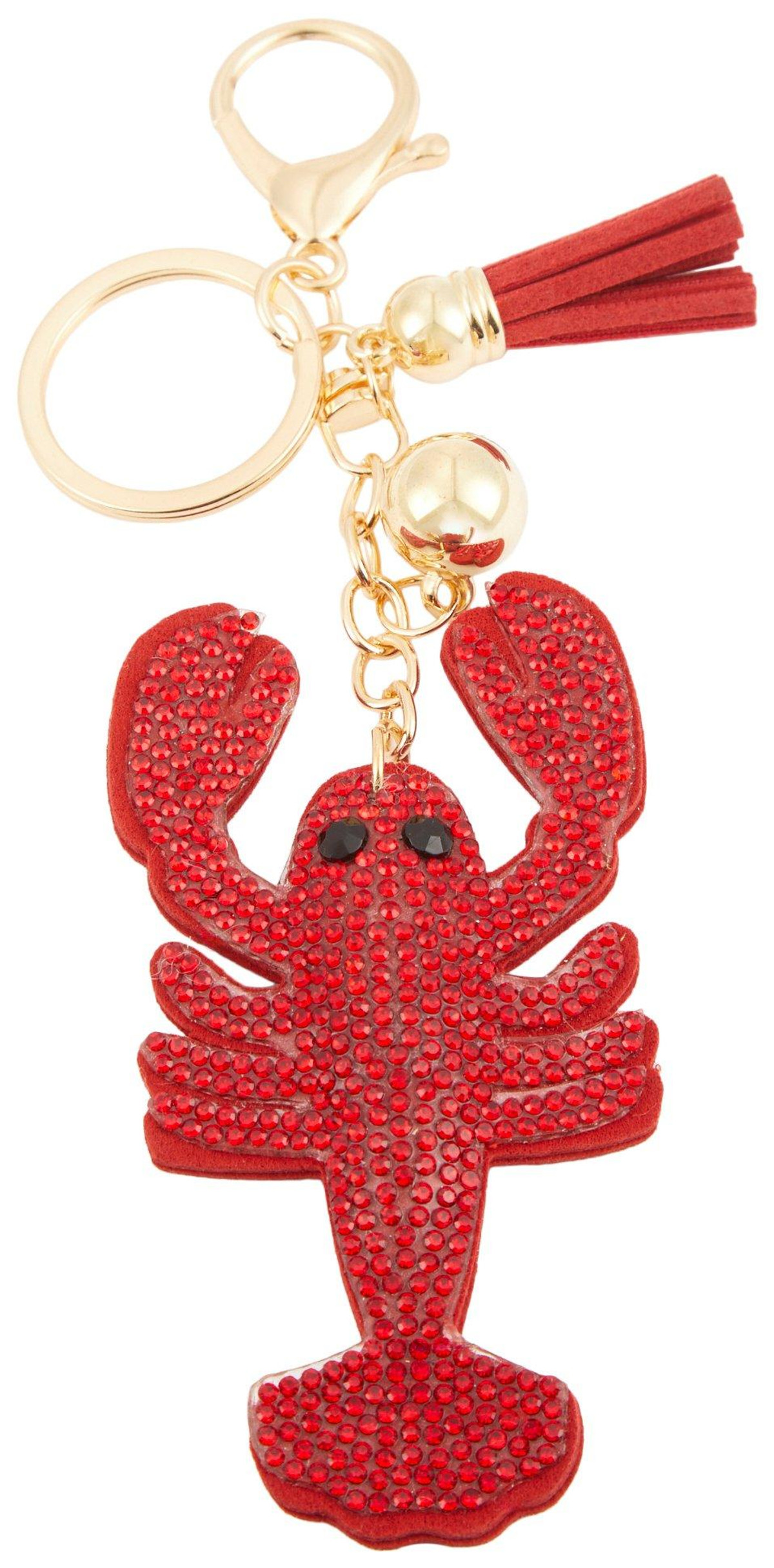 Add a splash of seaside sparkle with this 4-inch Lobster Bag Charm. Featuring a rhinestone-studded exterior and a gold-tone lobster claw closure, it is a fun and eye-catching accessory perfect for bags, backpacks, or keychains.