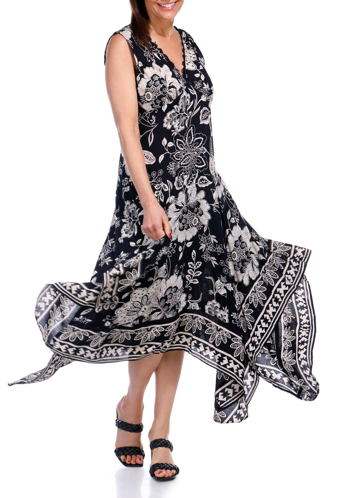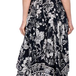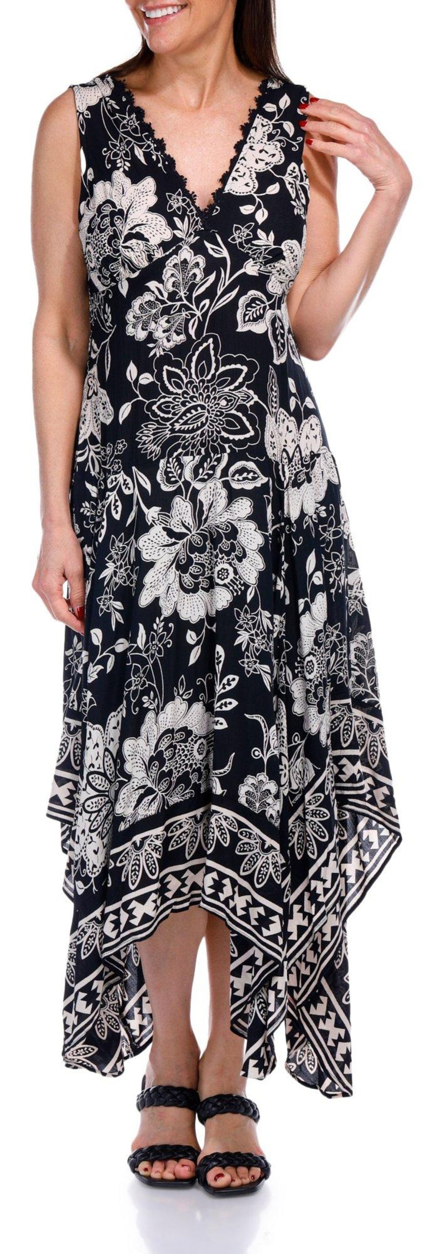 Lola P Womens Sleeveless V-Neck Border Print Midi Dress