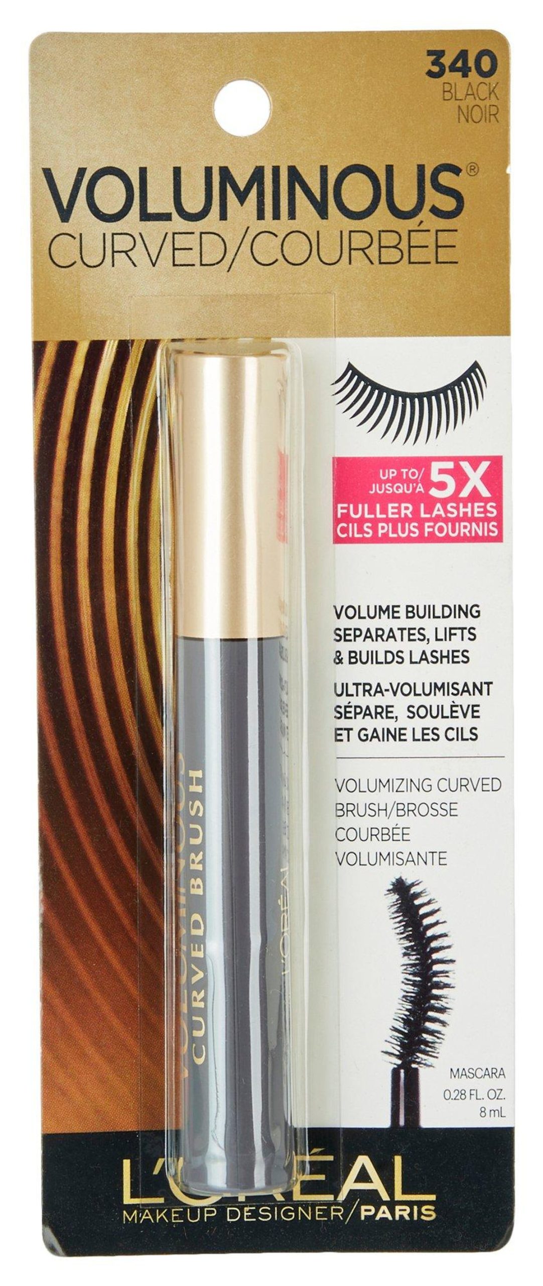 L’Oreal Voluminous 0.28 Fl. Oz. Curved Brush Mascara builds volume, separates, and lifts giving up to 5x fuller lashes. Resists clumping, keeps lashes soft, and builds lashes. 0.28 fl. oz.