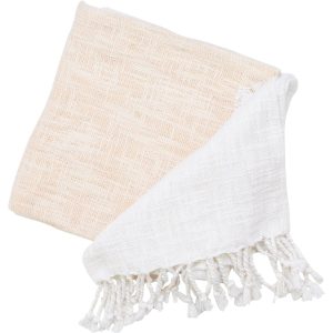 This handmade throw blanket features a stylish fringe border, adding texture and charm to any space. Made from 100% soft cotton, it measures 50 x 60 for the perfect size to drape over a couch or bed. This blanket brings style to your home décor.