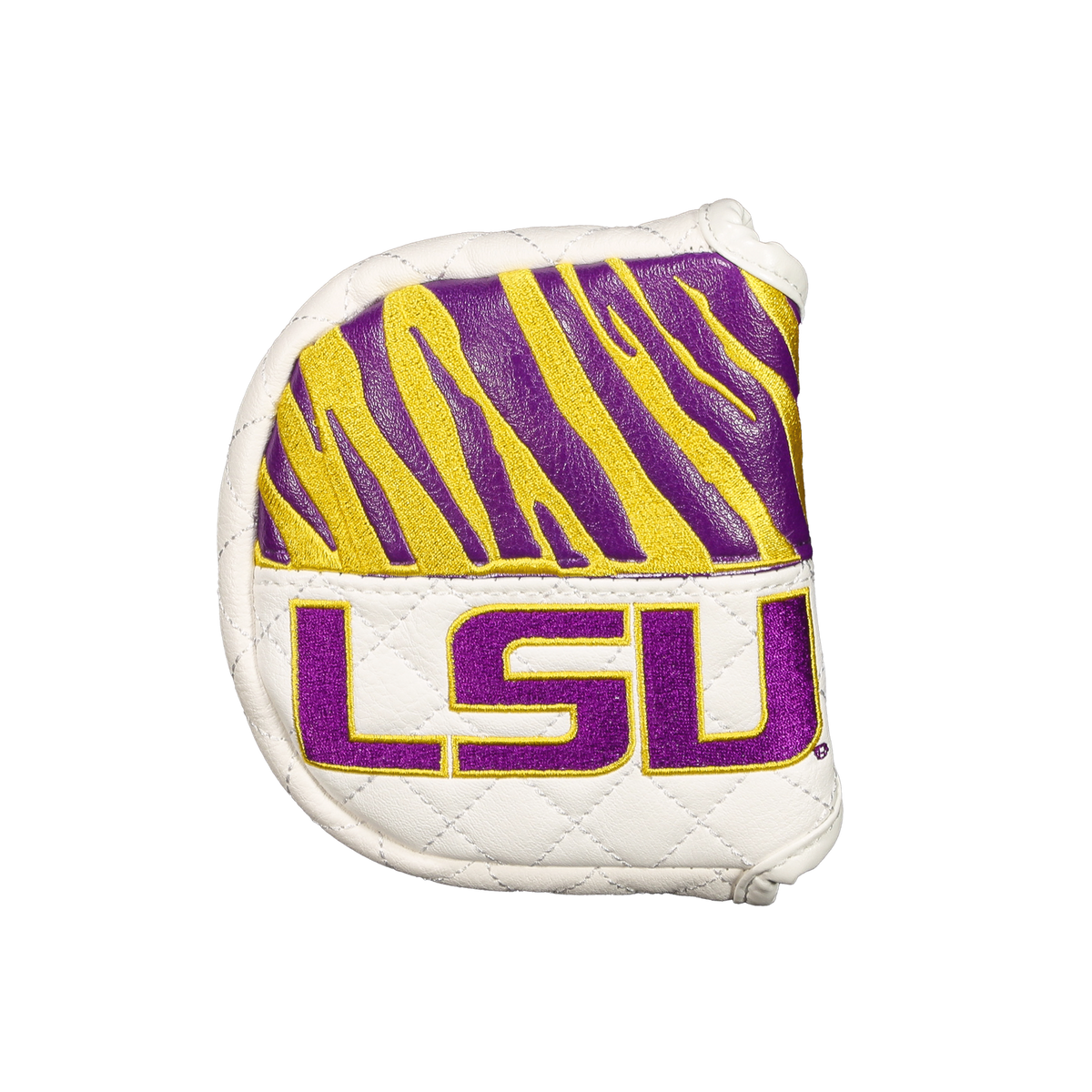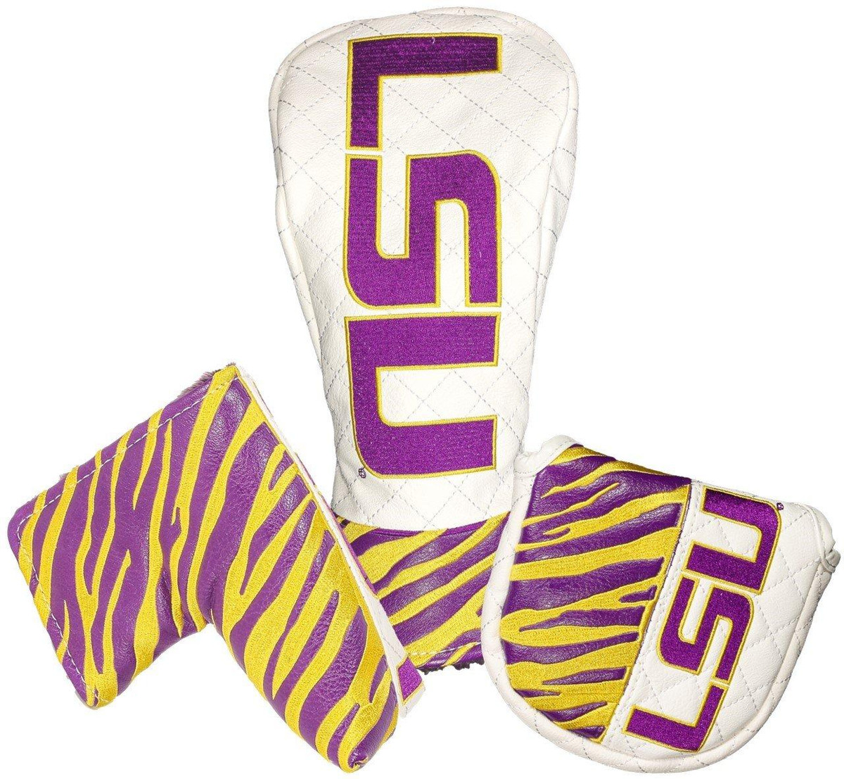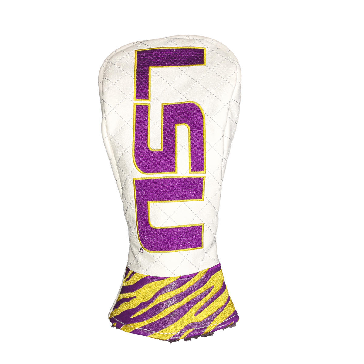 Rep your team with a custom LSU Tigers Headcover from our highly sought-after NCAA Golf Collection. Our Golf Headcovers are uniquely designed in-house from CMC Designs. Add a touch of personality and enhance your golf game in style. Our headcovers are meticulously crafted using top-quality faux leather with a plush inner lining to protect your investment.