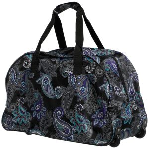 Travel smart and stylish with this 22 in Wheeled Weekender Duffel Bag. Lightweight and collapsible, it fits tight spaces with ease while helping you stay within airline weight limits. Glide effortlessly through airports with smooth-rolling wheels and a telescopic handle. Unique print design helps your bag stand out from other bags. Durable, elegant, and ready for any journeythis bag is your go-to travel companion. Measures approximately 22 in x 10 in x 14.5 in.