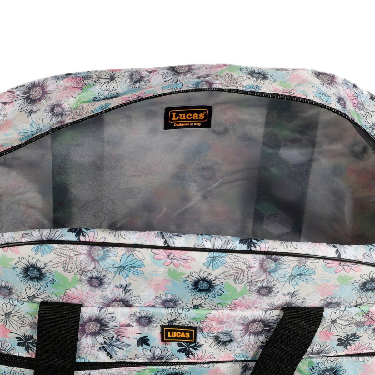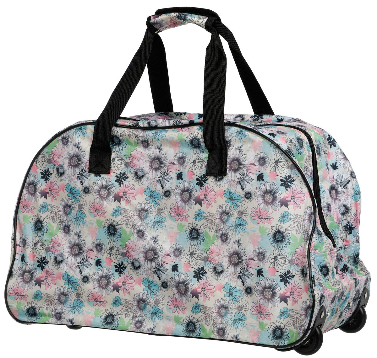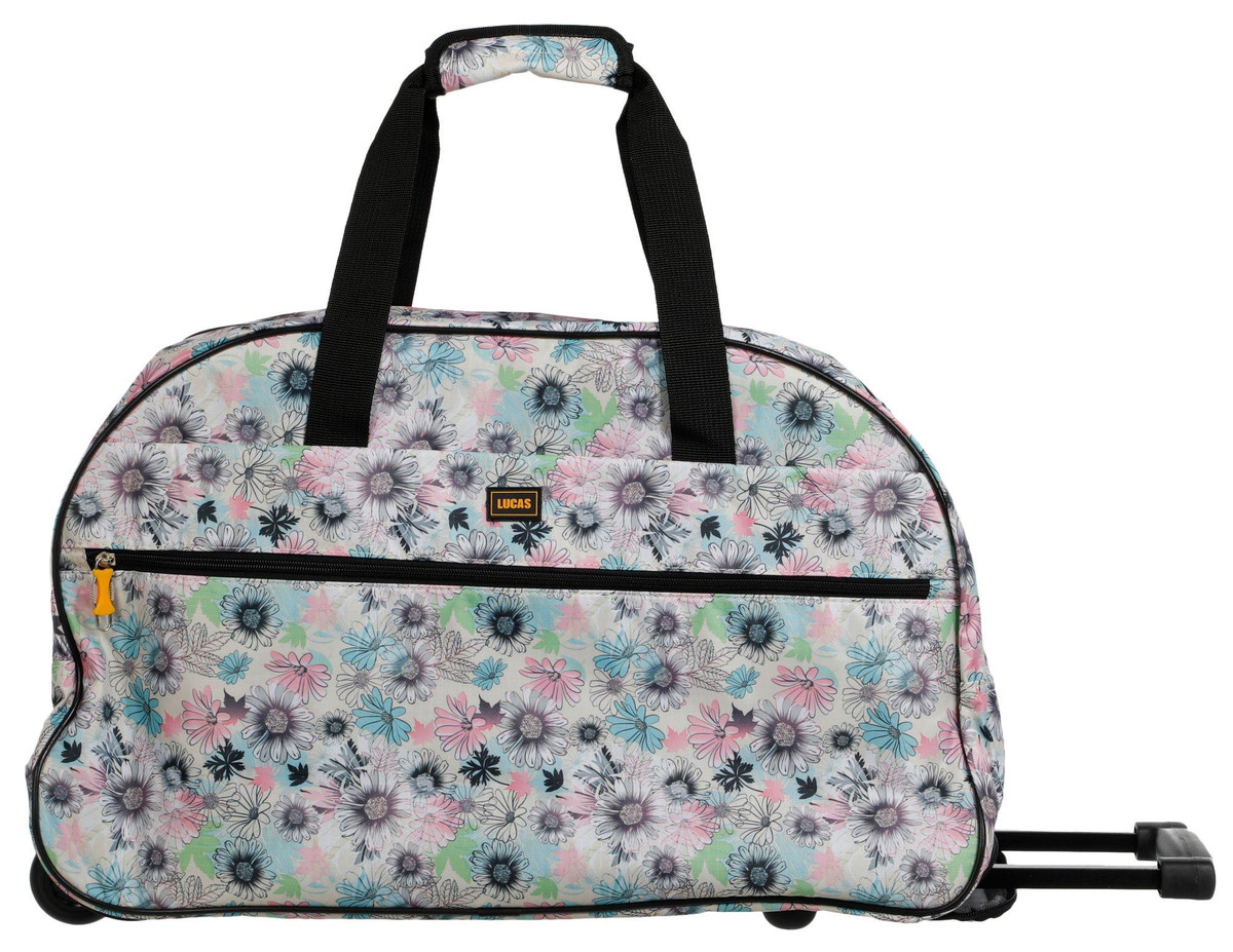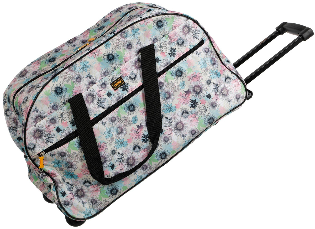 Travel smart and stylish with this 22 in Wheeled Weekender Duffel Bag. Lightweight and collapsible, it fits tight spaces with ease while helping you stay within airline weight limits. Glide effortlessly through airports with smooth-rolling wheels and a telescopic handle. Unique print design helps your bag stand out from other bags. Durable, elegant, and ready for any journeythis bag is your go-to travel companion. Measures approximately 22 in x 10 in x 14.5 in.