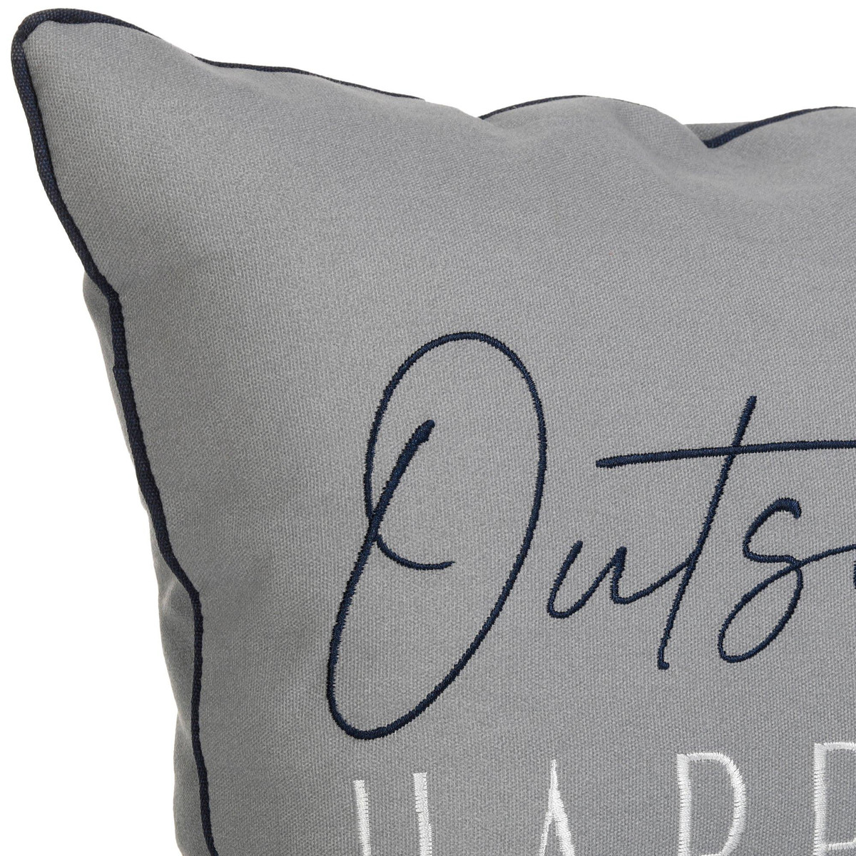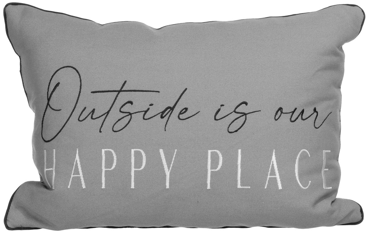 Add this cozy 18 in Outside Happy Place Script Lumbar Pillow to your home for added style with a delightful message. This pillow is a seamless addition and a wonderful neutral shade to adorn your home patio. It makes a lovely accent piece for your bed, sofa or chair. Measures approximately 18 in x 13 in.