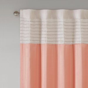 Add a casual update to your home with the Madison Park window curtain. his window panel features a modern striped design in natural hues of ivory, taupe, and mocha combined with pintuck detailing for beautiful texture and dimension. The added lining helps filter the perfect amount of light and creates fullness for better drapability. Fits up to a 1.25 diameter rod. Measures 50”W. Panels sold individually. As shown – Need to purchase 2 curtain panels for each window for standard coverage.