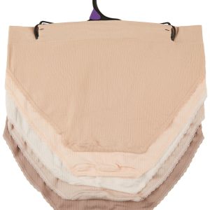 These Maidenform Luxurious Lace Thong Panties feature an elastic waistband and front fabric panel for a smooth, no panty-lines look. Fabrication 86% nylon, 14% spandex, and a 100% cotton lining. DMESLT