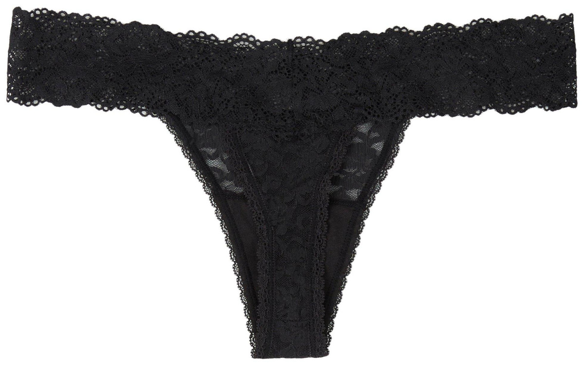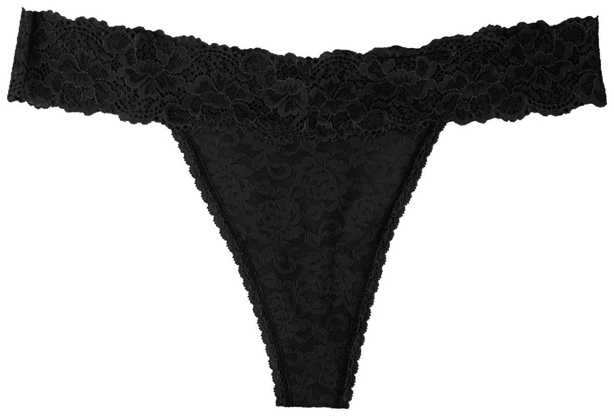 These Maidenform Luxurious Lace Thong Panties feature an all-over lace with an elastic waistband for a smooth, no panty-lines look. Fabrication 86% nylon, 14% spandex, and a 100% cotton lining. DMESLT