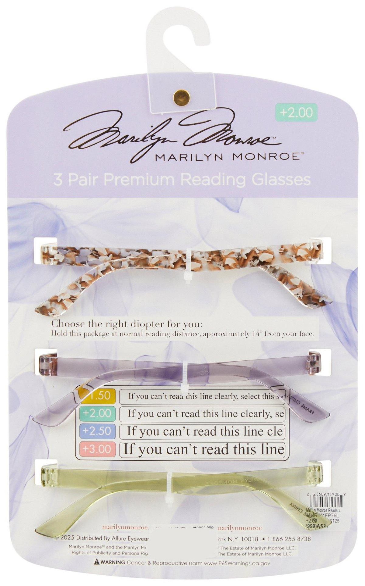 Bring timeless style to your routine with the Marilyn Monroe Reading Glasses Set, featuring two chic solid colored frames and one shell-inspired pattern. Perfect for reading, crafting or browsing recipes, each pair offers a fabulous way to bring focus back to your day. Designed for everyday ease, this versatile set keeps you covered at home, work or on the go.