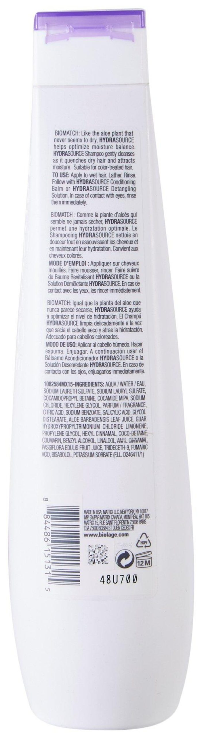 This Hydra Source aloe shampoo from Biolage nourishes and moisturizes dry hair keeping it vibrant and healthy. Expiration 12 months after first use. 13.5 fl. oz