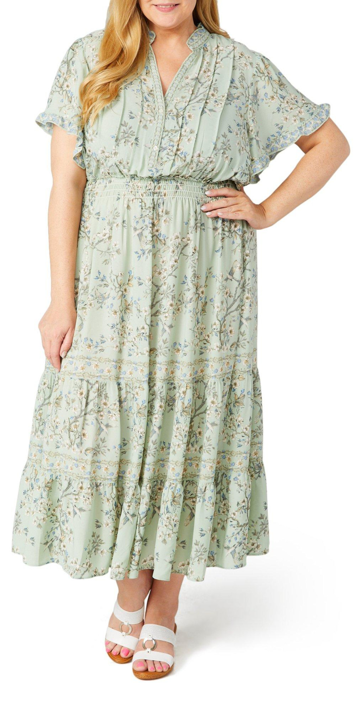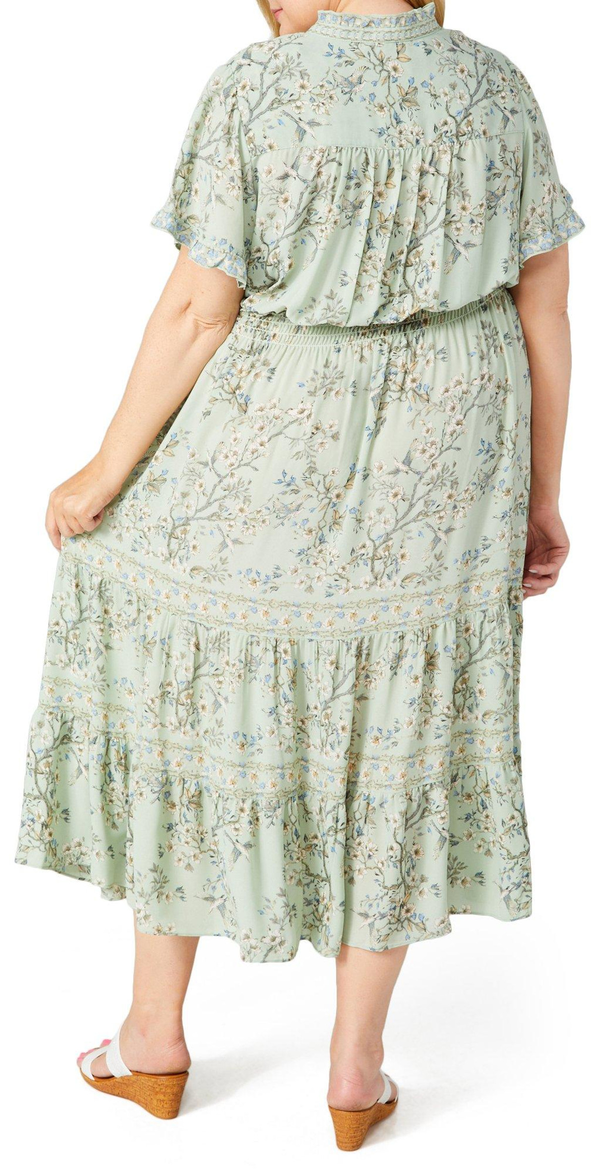 Max Studio Plus Short Sleeve Floral Tiered Midi Dress