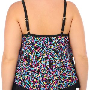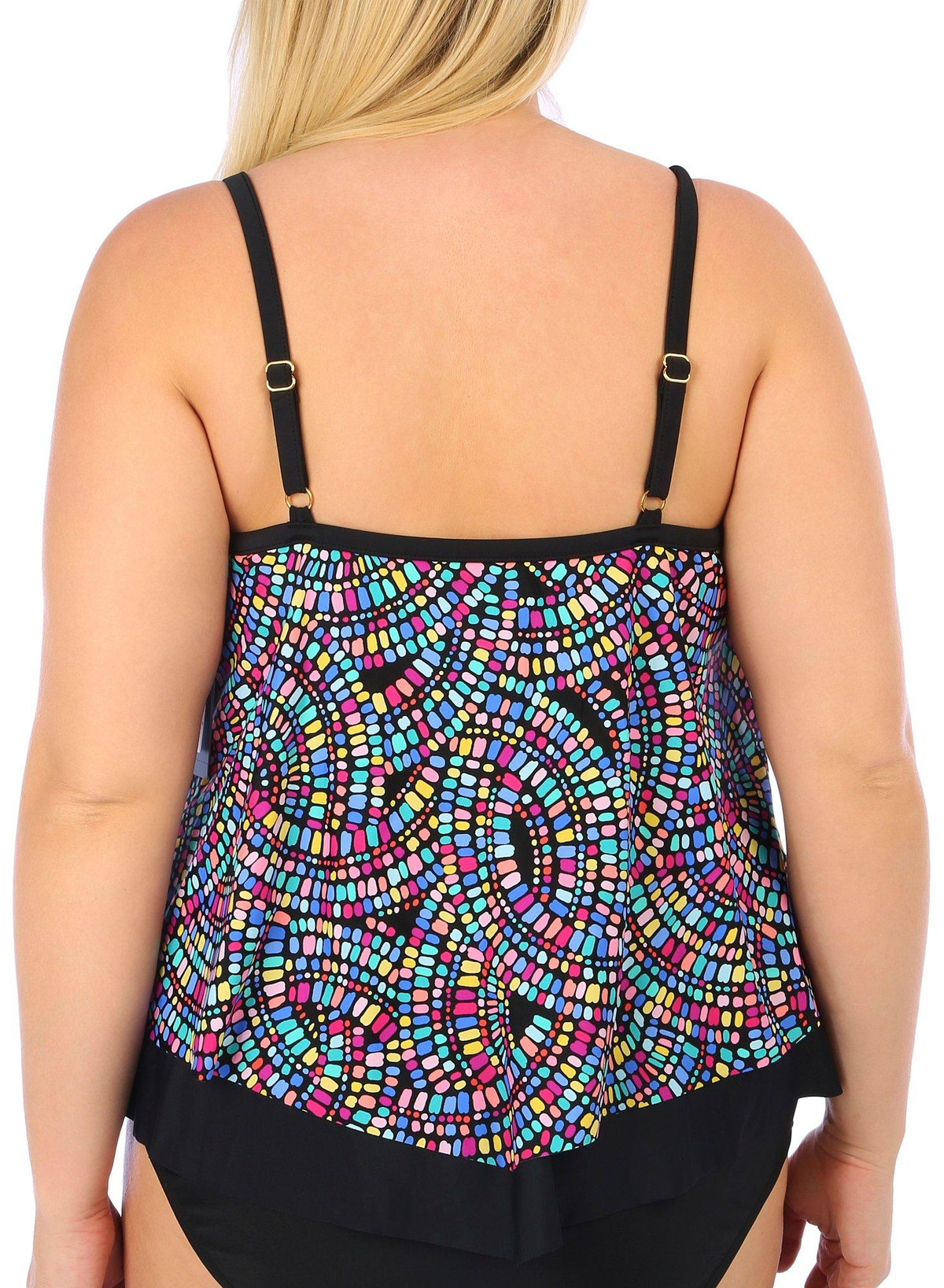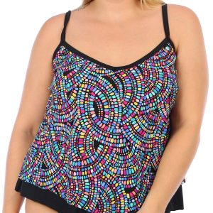 Get ready for your next trip to the beach or pool with this colorful tankini top! It features a floral print design, a v-neckline, molded cups, adjustable straps, and fluttering layers. Fabrication 82% nylon and 18% Lycra.