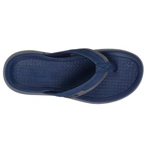 The Carver Squish flip-flops have a multi-layer polyurethane coated strap with a soft REPREVE recycled polyester lining. The nylon toe separator is made of regenerated Econyl nylon fibers. The hydrobound insole is extra thick for greater comfort and wearability, making them more durable. The midsole is wrap-around and molded with built-in arch, heel and forefoot support. The outsole is an inflated rubber outsole with multi-angle notches with logo for increased traction.