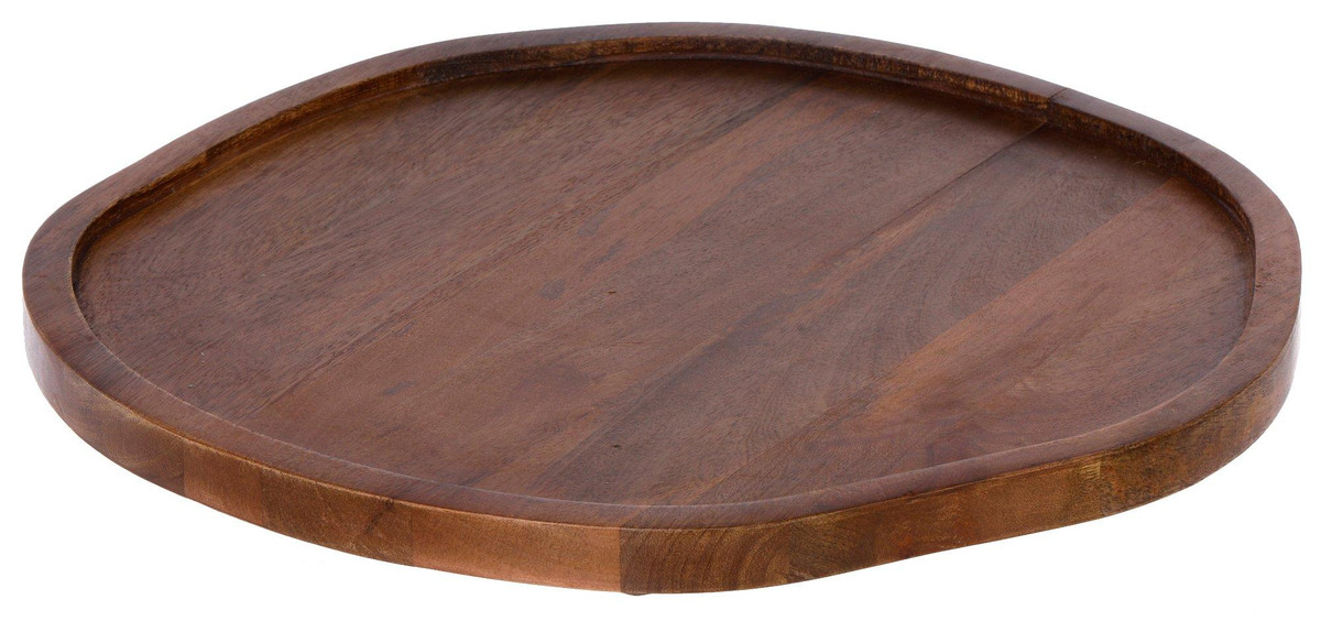 Enhance casual gatherings with the 14 in Cora Wood Lazy Susan. Designed with an organic, freeform shape and crafted from richly grained wood, it offers a natural, artisanal touch to any table. Smoothly rotating for effortless serving, its perfect for sharing snacks, dips or charcuterie at family meals or relaxed entertaining. Measures approximately 14 in round x 2 in.