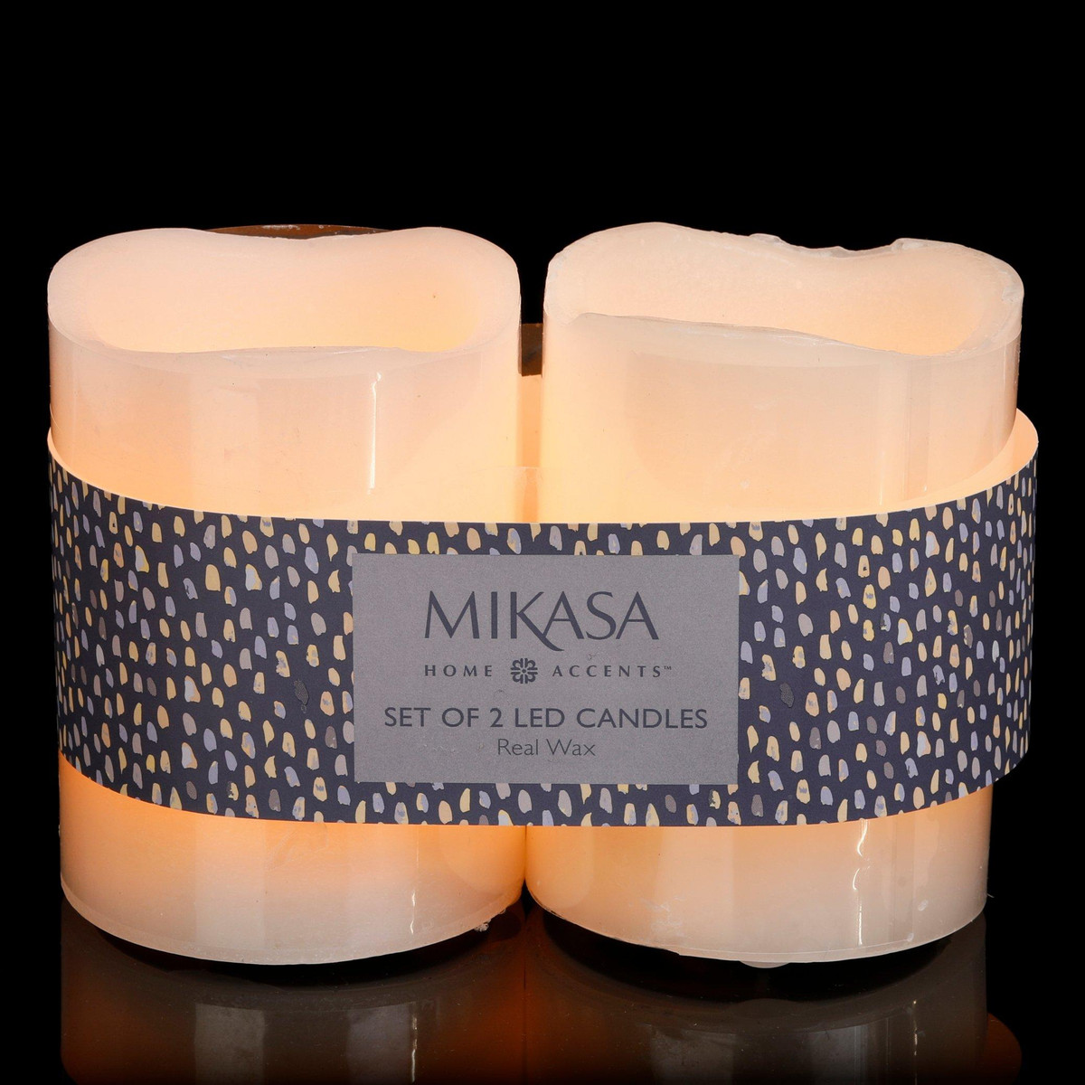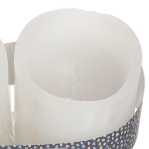 Add a warm, elegant glow to any space with this set of flameless LED candles. Made from real wax with a soft flickering light, they offer a safe, mess-free alternative to traditional candles. Each pillar operates on 2 AA batteries (not included) and Measures: 3×4 in. Pefect for effortless ambiance anywhere in your home.