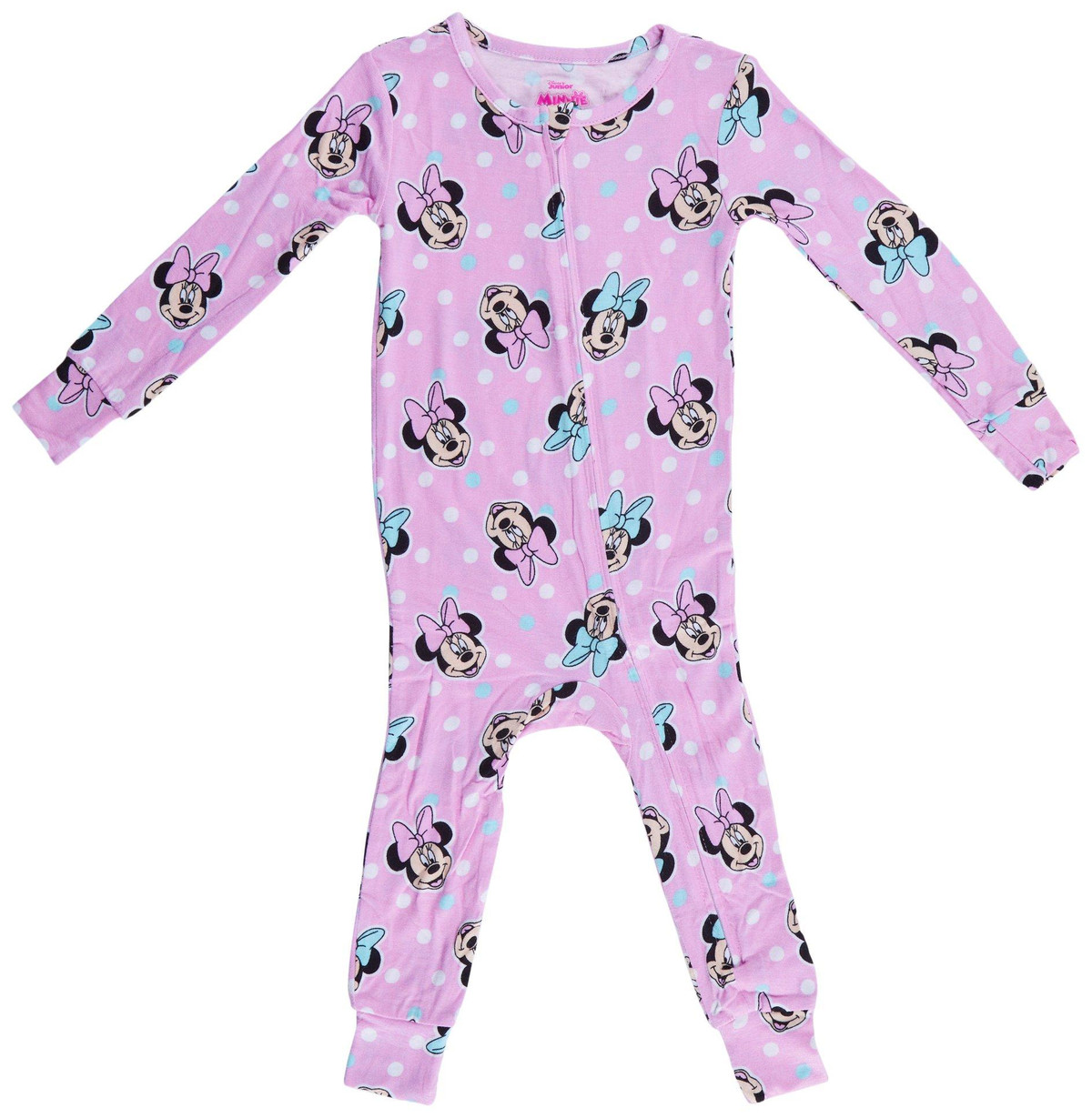 Introducing the Baby Girls Footed Sleeper, crafted from a soft blend of viscose and spandex for ultimate comfort. This adorable sleeper features an all-over Minnie Mouse print, a full front zip closure for easy dressing, and long sleeves to keep your little one cozy. Perfect for bedtime or lounging, this sleeper combines style and practicality, ensuring your baby girl stays comfortable and cute.