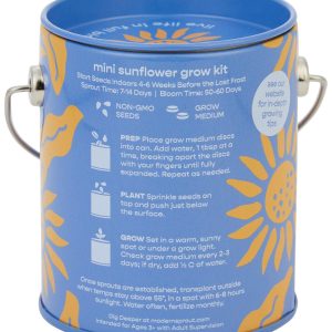 Brighten someones day with the Bada Bloom Mini Sunflower Grow Kit, a playful gift tucked into a printed mini paint can thats as charming as it is functional. Easy to grow and fun to gift, this kit includes everything needed to start sunflowers indoors, with seed-to-harvest support for confident growing. Once the blooms fade, reuse the colorful half-pint can for keepsakes, crafts or storage. For ages 3+. Measures approximately 3.5 in x 3 in round.