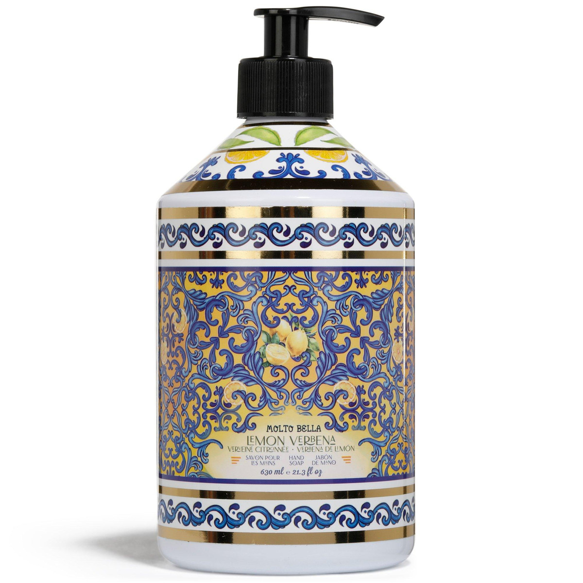 Elevate your handwashing routine with the luxurious Lemon Verbena Hand Soap. Encased in a stunning, art-inspired bottle, this hand soap blends beauty and functionality, making it a perfect addition to any kitchen or bathroom. Featuring an intricate, Mediterranean-inspired design, the beautifully crafted bottle adds a touch of sophistication and charm to any countertop or sink area. 21 FL. OZ.