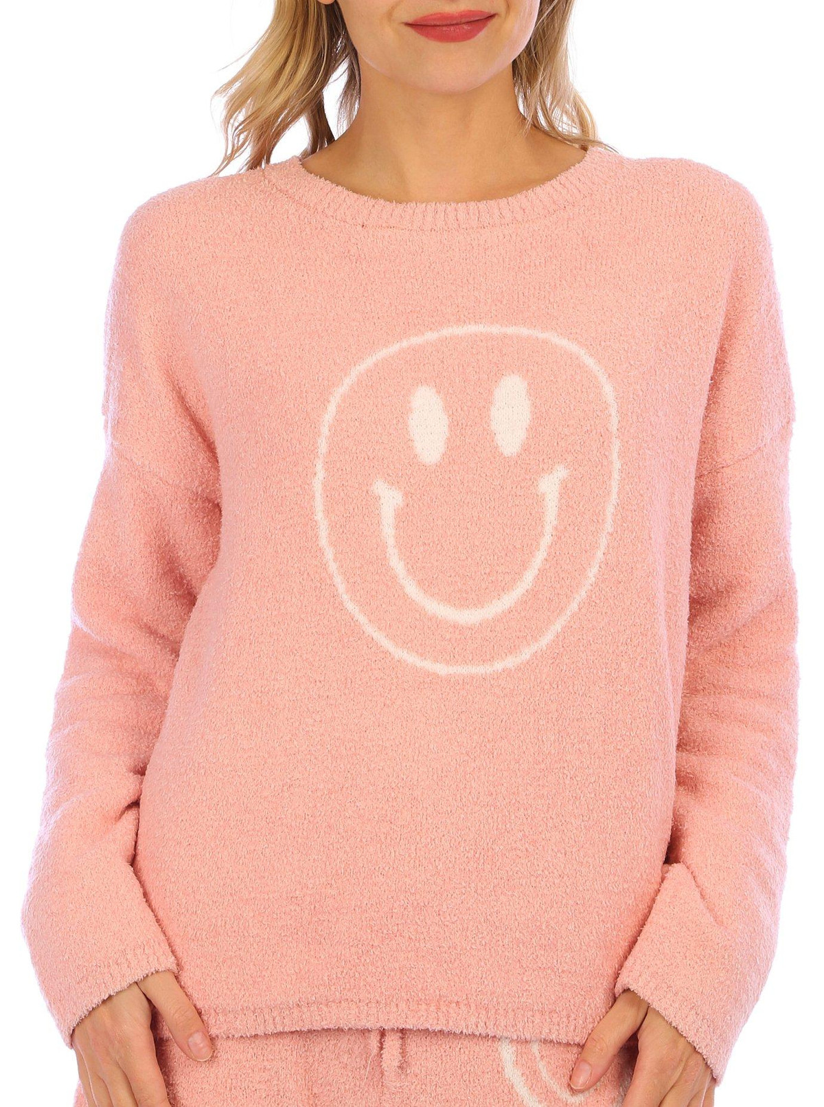 Perfect for lounging or sleepwear, our Juniors Smiley Face Pullover features a cute smiley face design, a crew neckline, long sleeves and a plush exterior. Fabrication is 100% polyester.