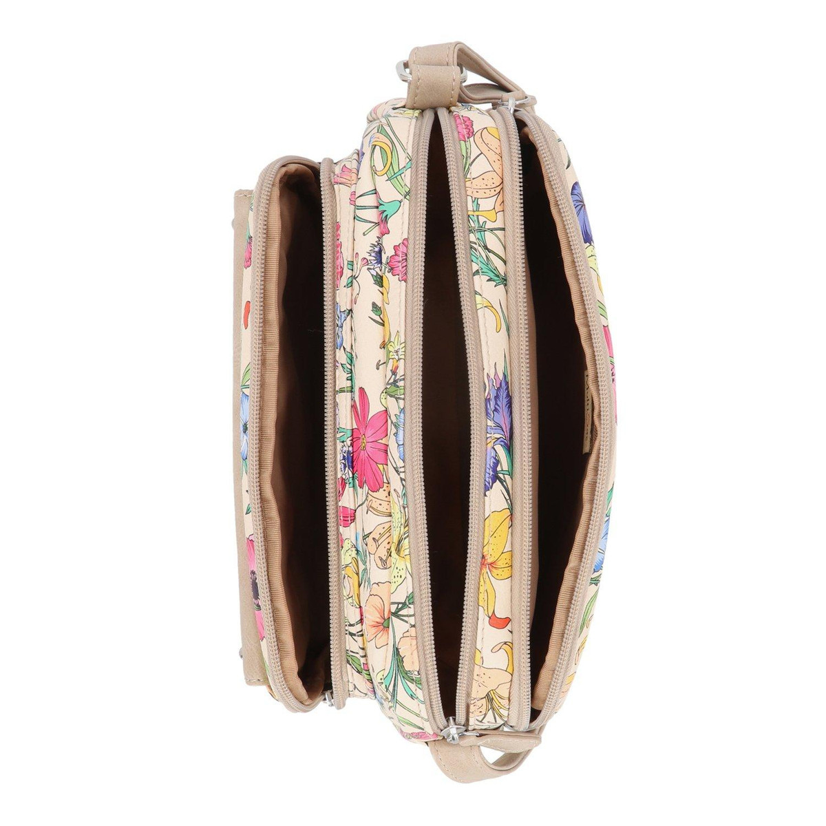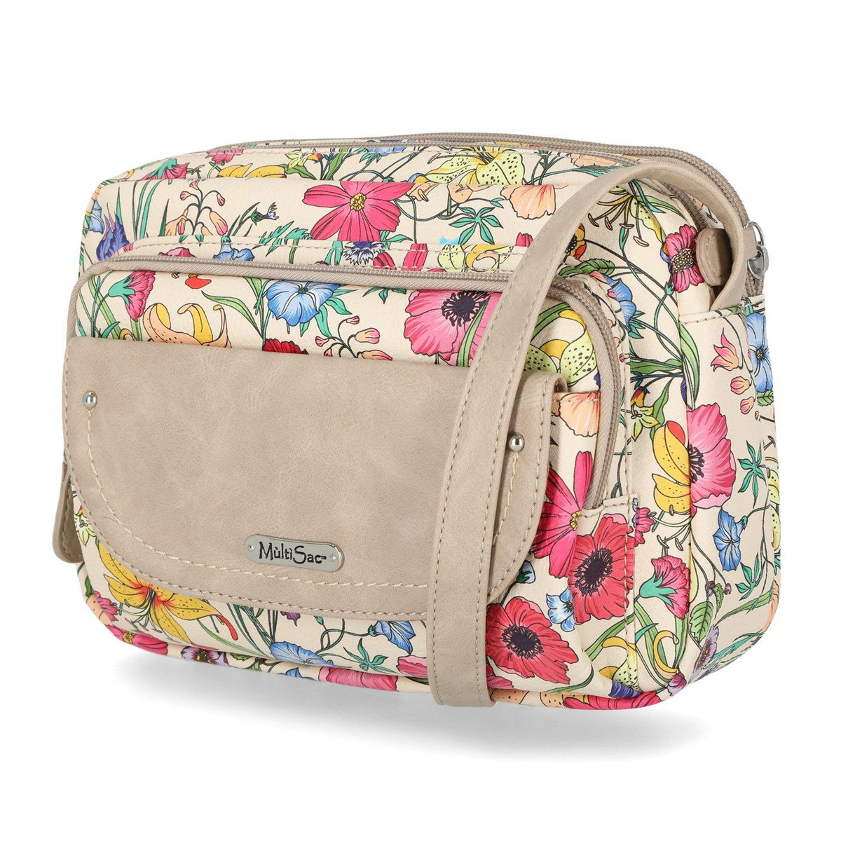Our Bonne Crossbody bag is an essential accessory for your wardrobe. The soft tone colors can be paired with any outfit. This medium size bag includes three main compartments, one slip closure pocket, two front wall slip pockets, and one back wall zip pocket. Measures approximately 10 in. L x 3 in. W x 7 in. H.