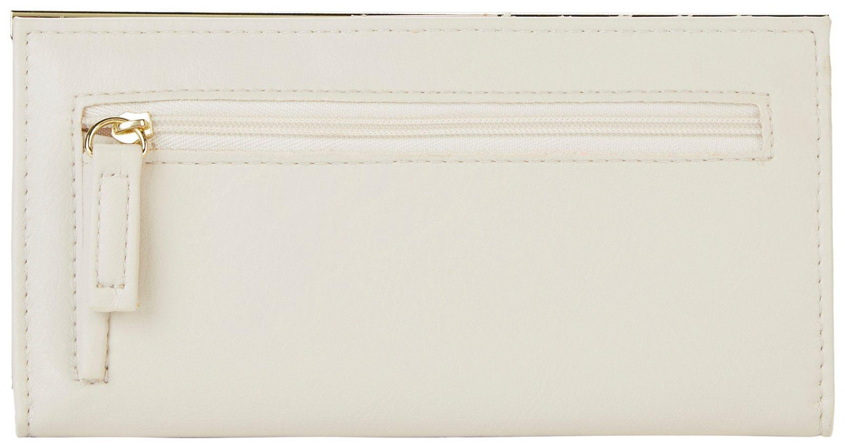 Ready to dominate your night out? The Mundi Mu Slim Clutch Wallet brings the heat with RFID-blocking tech, sleek black faux leather, silver-tone hardware, and a snap closure. Youve got 12 card slots, 2 slip pockets, 1 ID window, and a back zip pocket for fast access. Slim, secure, and stylish. Measures 6.75 L x 3.5 H x 0.63 W.