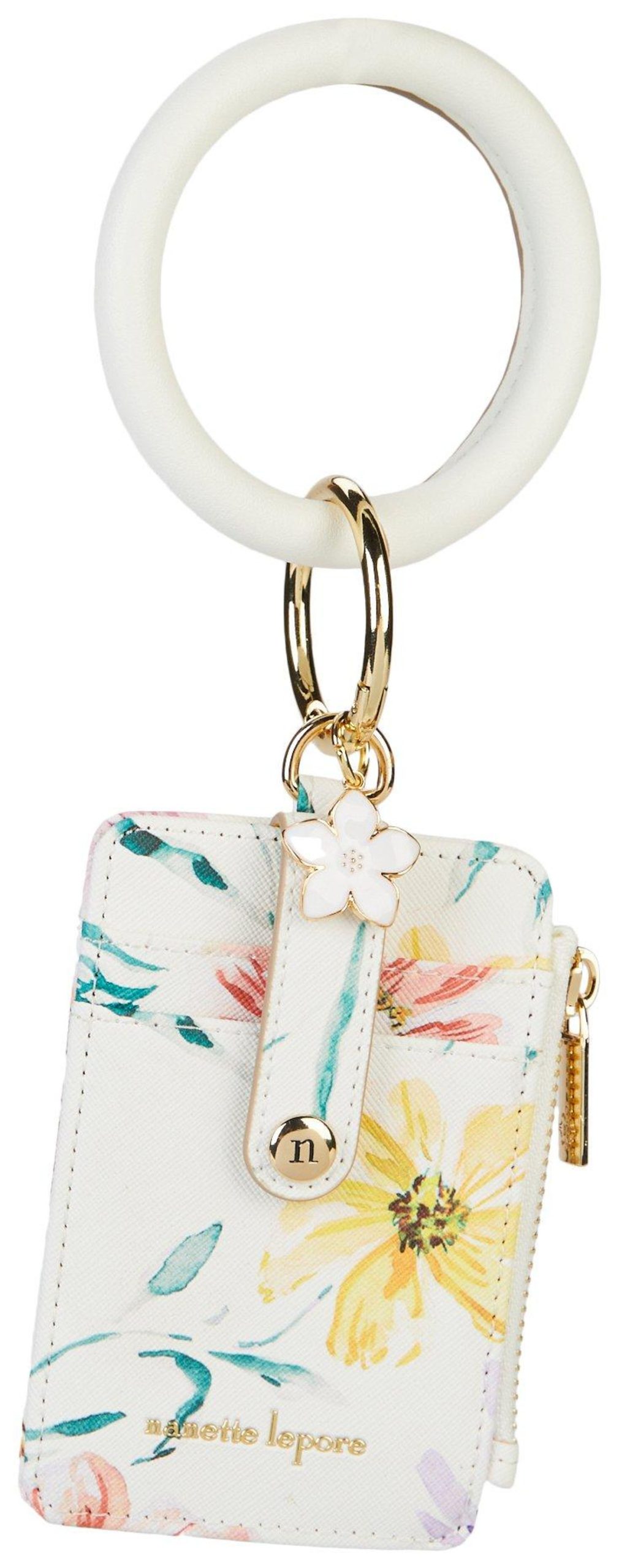 Stay stylish and organized with the Nanette Lepore Candi Card Case Flower Bracelet Walleta chic and multifunctional accessory designed for convenience and flair. Featuring a unique bracelet design and compact card case, it effortlessly combines fashion with practicality. Features removeable key ring and card case. Cardholder has 2 card slots with snap closure, 1 ID window and 1 zippered pocket. Measures: 4.75 in H x 3.25 in W x .25 in D.