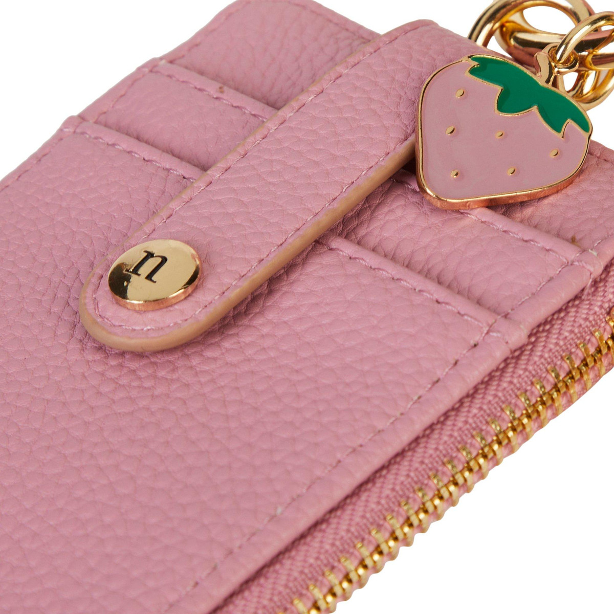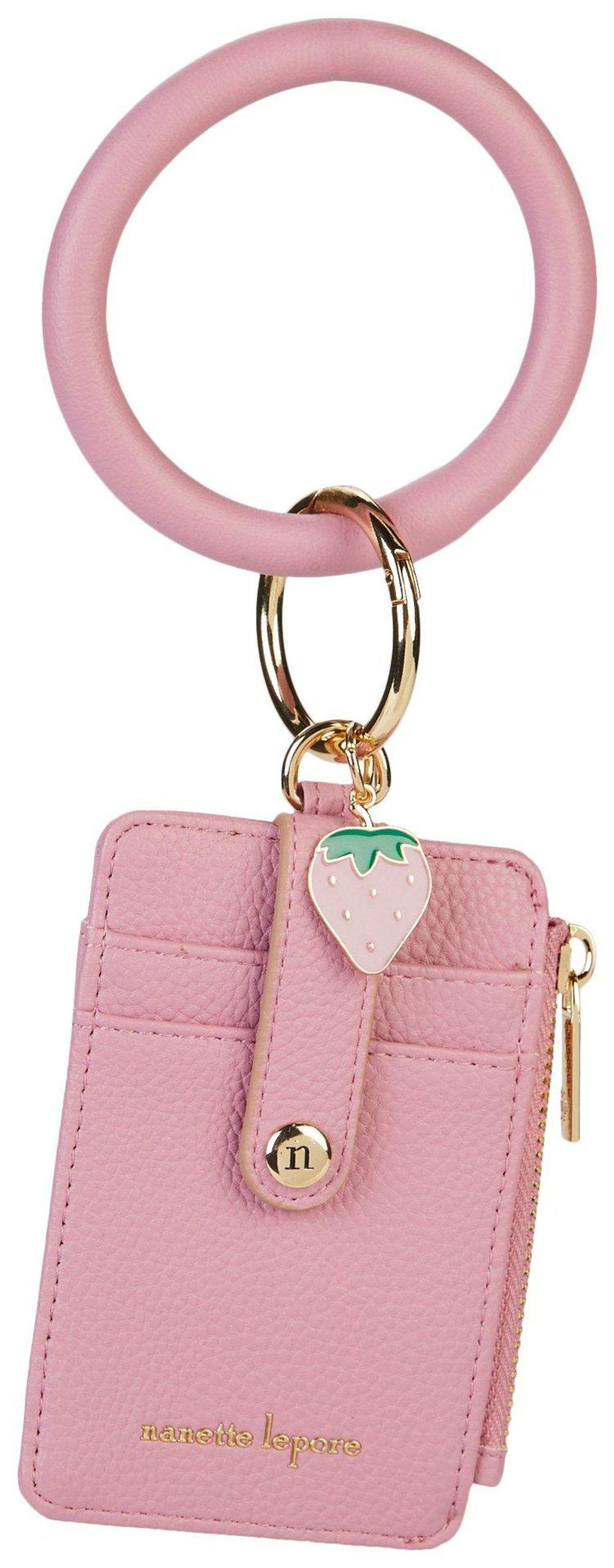 Stay stylish and organized with the Nanette Lepore Candi Card Case Fruit Charm Bracelet Walleta chic and multifunctional accessory designed for convenience and flair. Featuring a unique bracelet design and compact card case, it effortlessly combines fashion with practicality. Features removeable key ring and card case. Cardholder has 2 card slots with snap closure, 1 ID window and 1 zippered pocket. Measures: 4.75 in H x 3.25 in W x .25 in D.