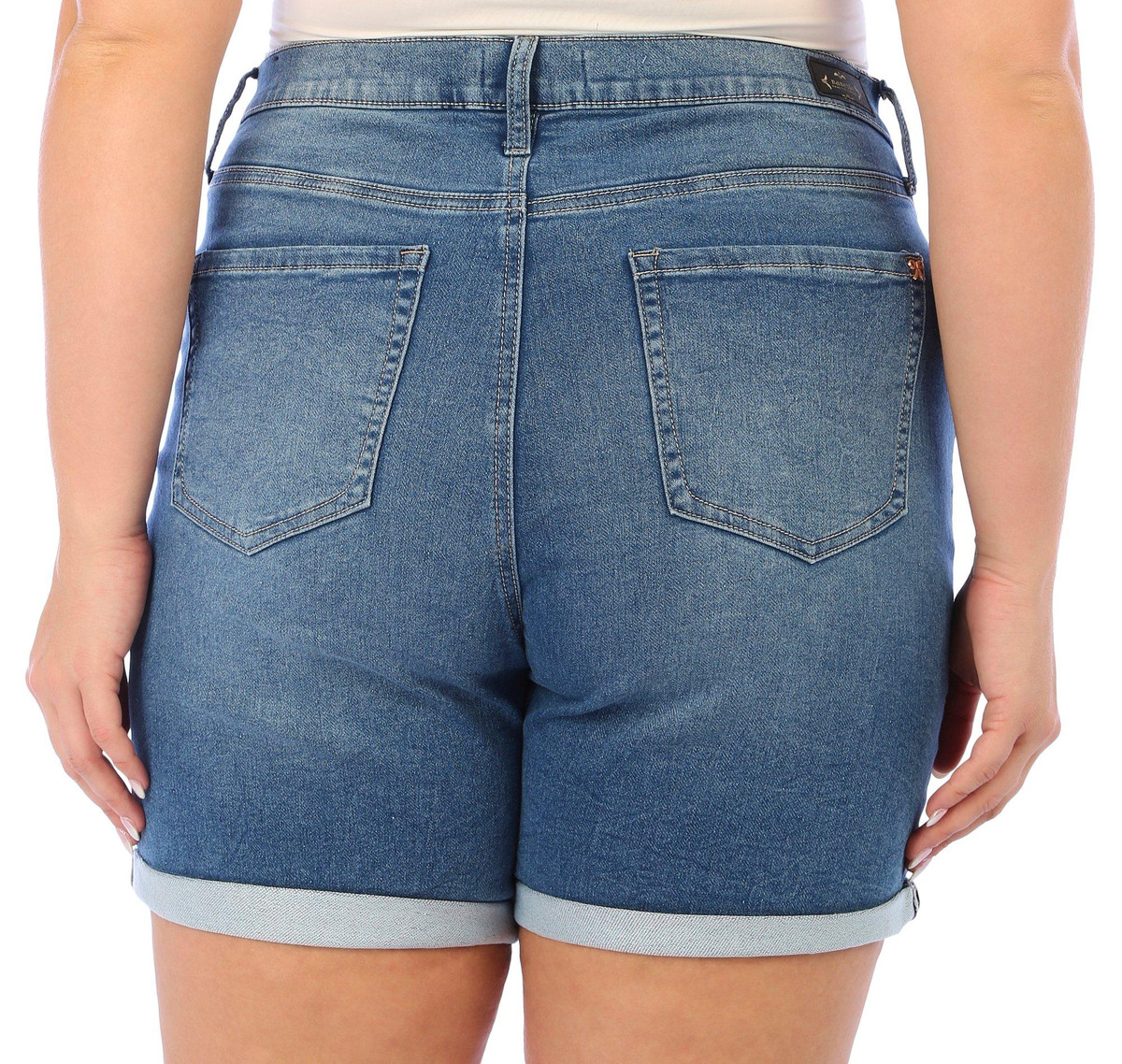 These women’s plus full cuff denim shorts feature a flattering 7-inch inseam for the perfect balance of comfort and coverage. Crafted from soft, stretchy denim, they offer a relaxed fit with a rolled cuff for a casual, laid-back look. Ideal for warm-weather days, these shorts are both stylish and versatile.