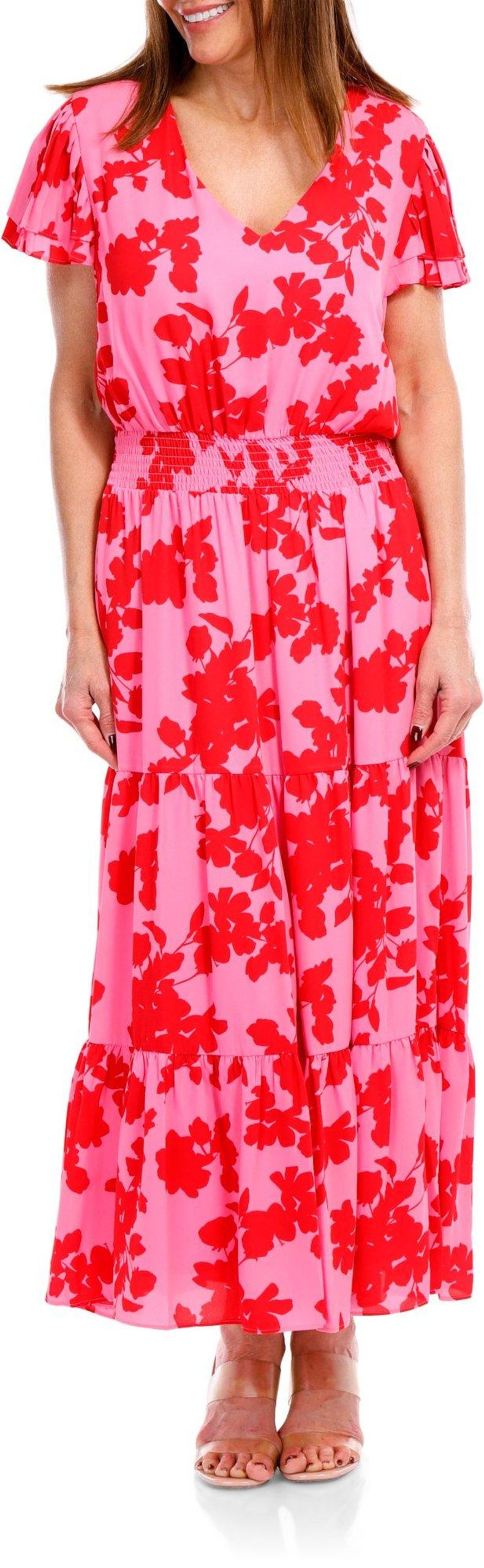 This women’s floral chiffon maxi dress, made from 100% polyester, offers a blend of elegance and comfort. The stylish floral design and V-neckline create a sophisticated look, while the short sleeves add a touch of charm. The tiered skirt flows beautifully, and with a 52-inch length, this dress is perfect for any occasion, from casual outings to formal events. Embrace effortless style with this stunning maxi dress!
