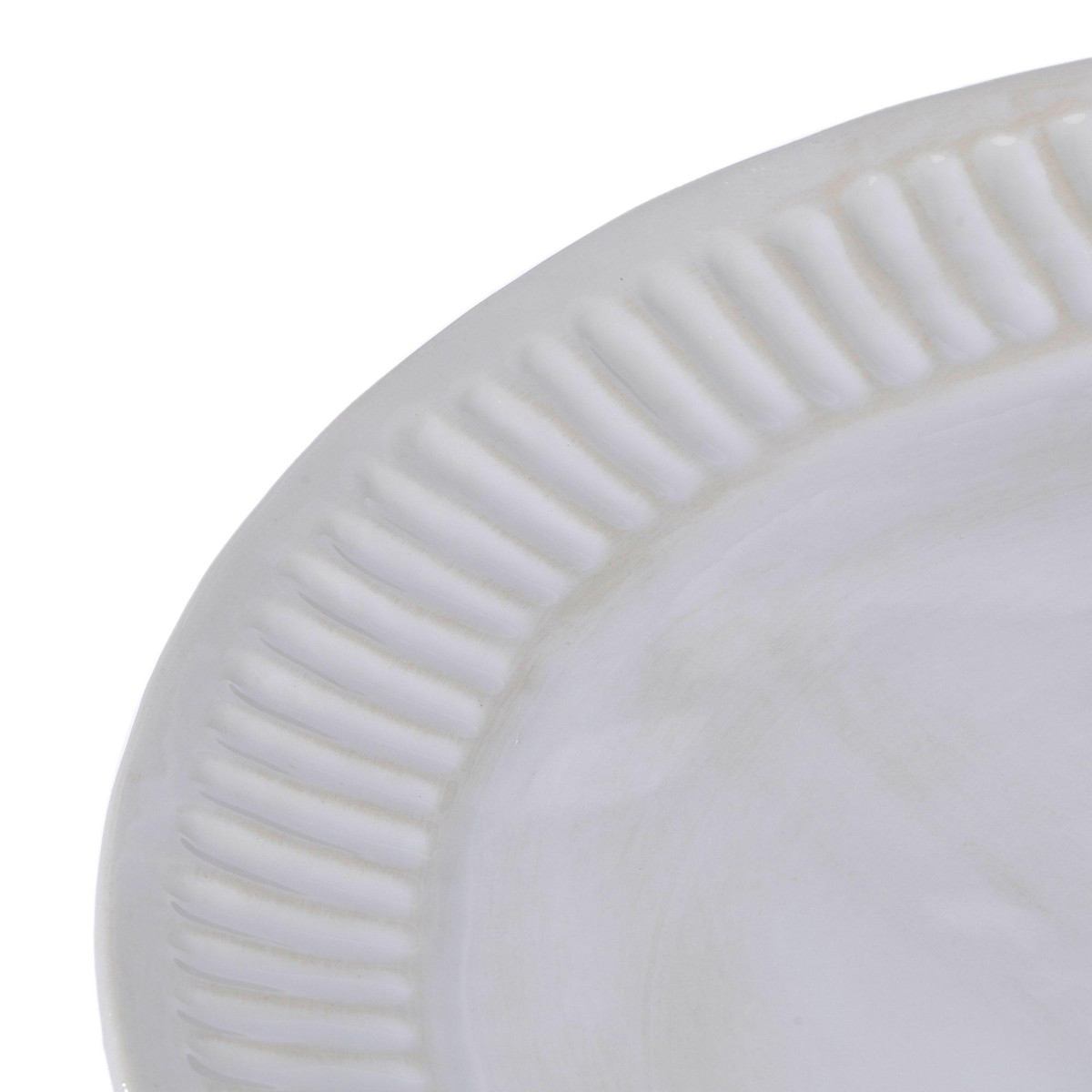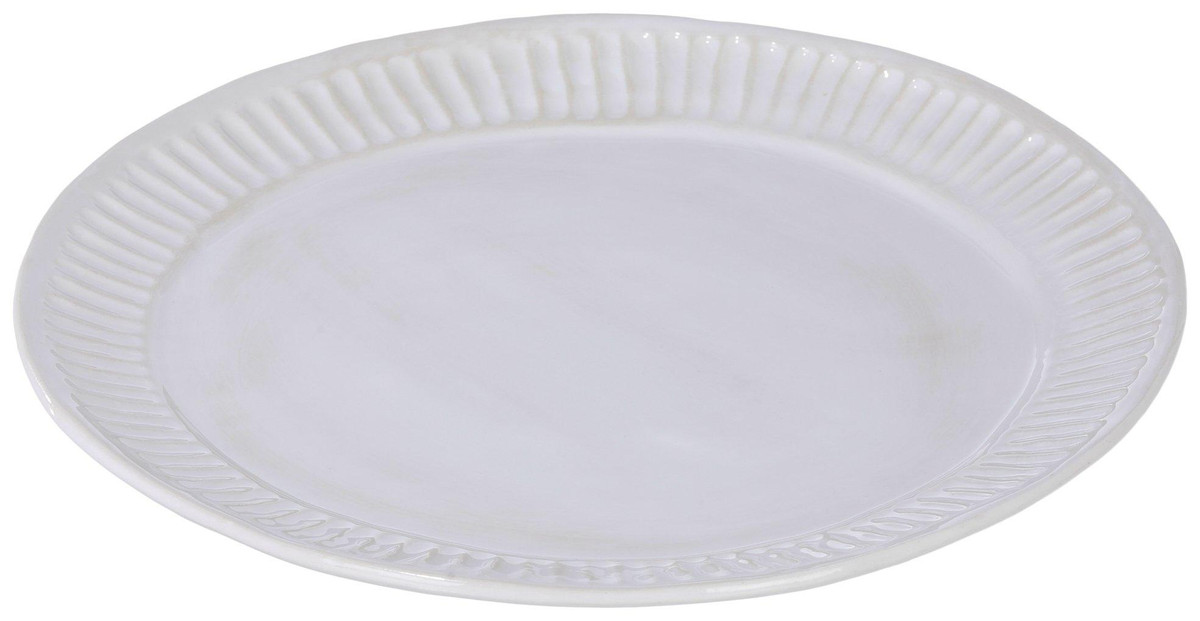 Elevate everyday meals with the Chalk Hill Ceramic Dinner Plate, designed in a crisp white hue with a subtle lined pattern along the rim. Ideal for serving entrees, salads or hearty dishes, it blends clean design with lasting durability. A versatile addition to any table, it suits both casual dining and refined gatherings with ease. Measures approximately 11 in round.