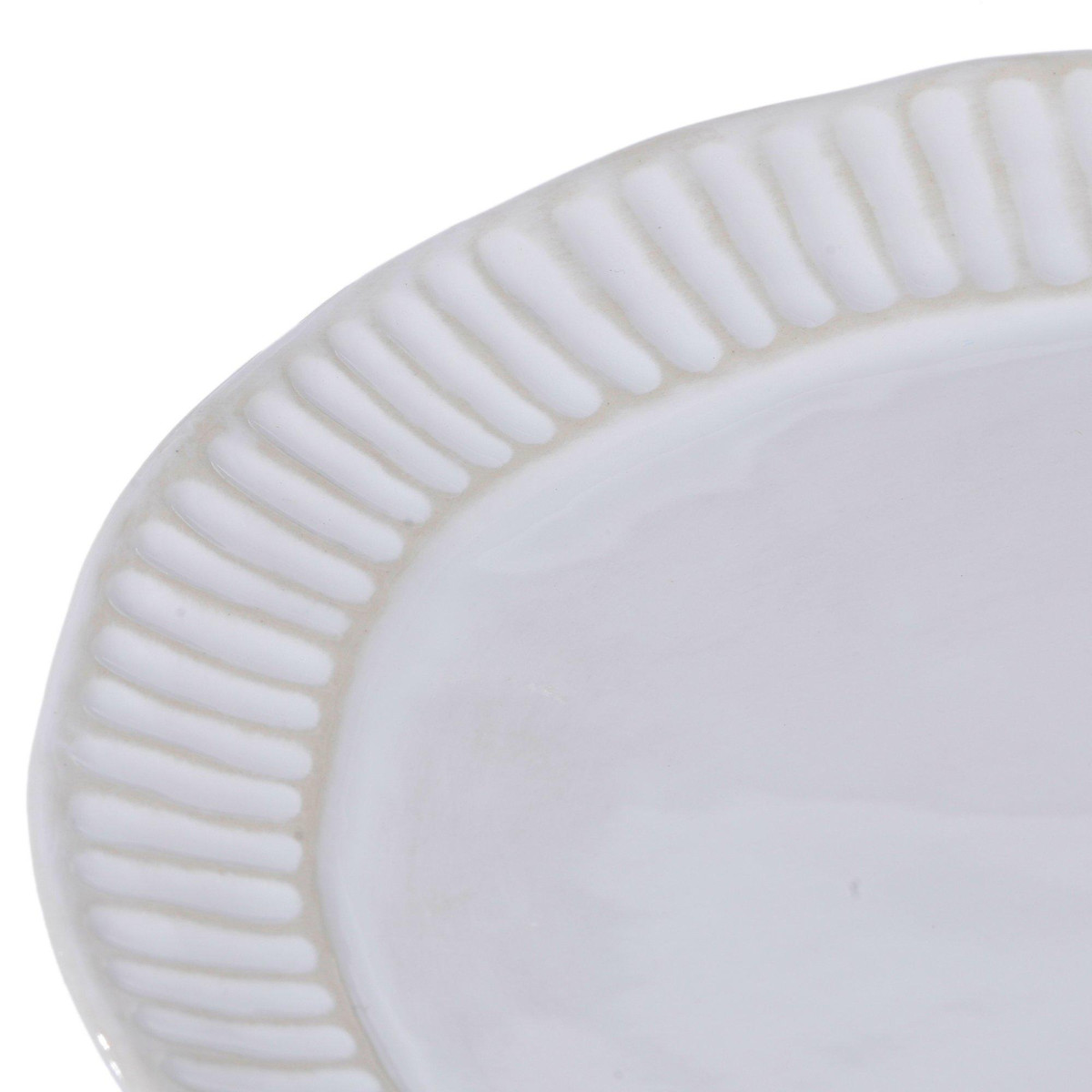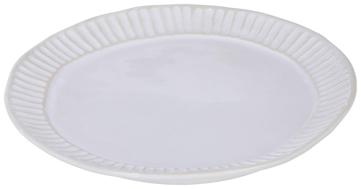 Elevate everyday meals with the Chalk Hill Ceramic Dinner Plate, designed in a crisp white hue with a subtle lined pattern along the rim. Ideal for serving entrees, salads or hearty dishes, it blends clean design with lasting durability. A versatile addition to any table, it suits both casual dining and refined gatherings with ease. Measures approximately 8 in round.