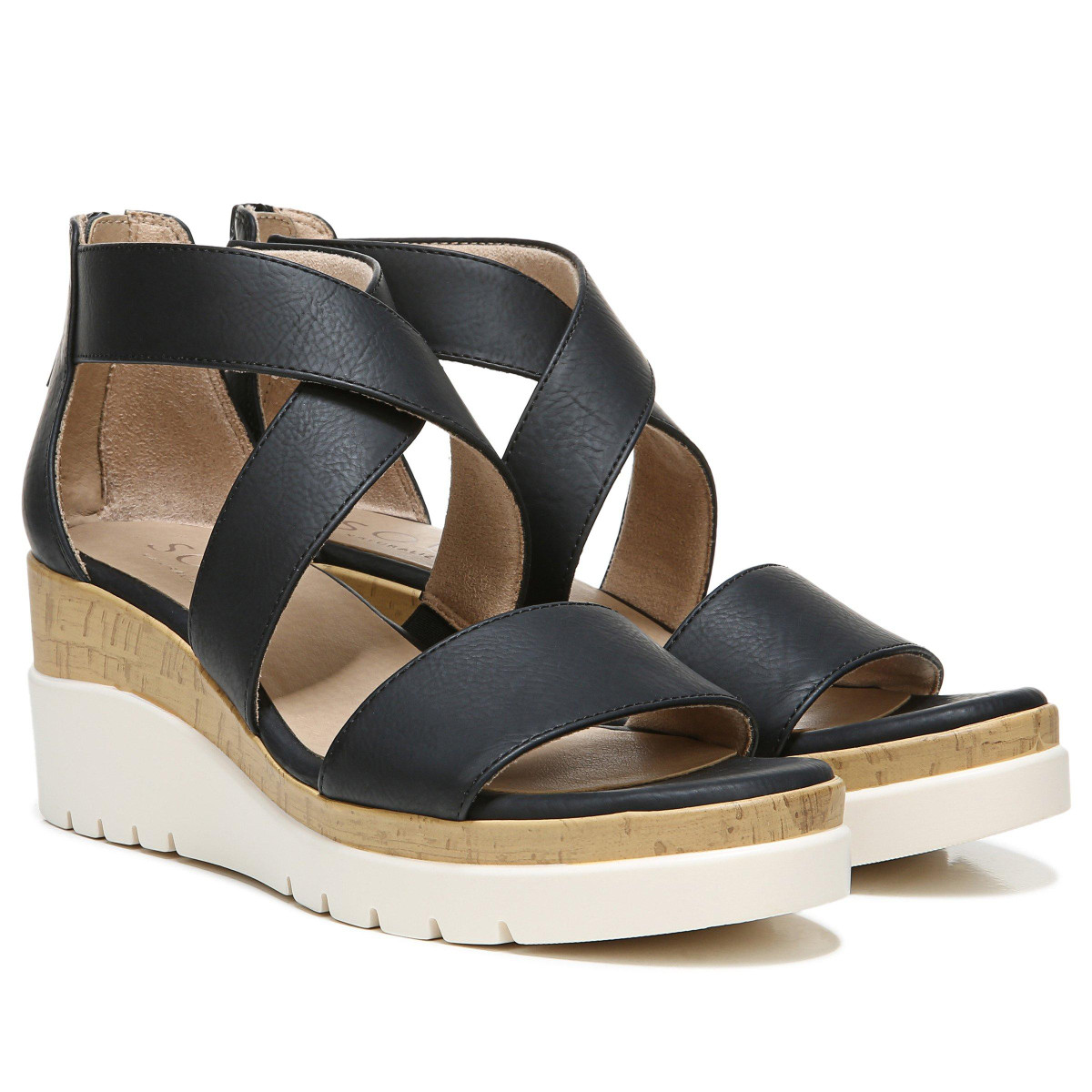 Your summer looks will get a whole lot stylish with these Goodtime platform wedge sandal. The sporty bottom and cork trim wedge are topped with a strappy upper. Antimicrobial socklining and memory foam with arch support boost your comfort.