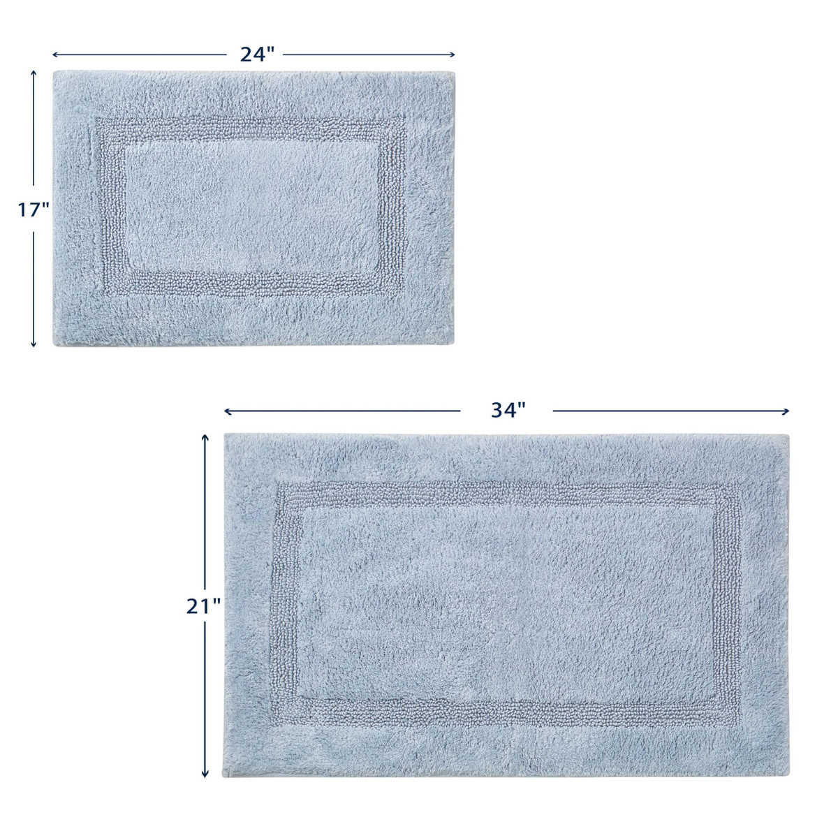Step out of your shower onto the luxuriously soft Peniston Solid Bath Rugs. These 100% cotton tufted are excellent for everyday bathroom use as they are constructed for maximum absorbency. Available in a 2-piece set consisting of one 17 in. x 24 in. rug, and one 21 in. x 34 in. rug. Machine washable for easy care.