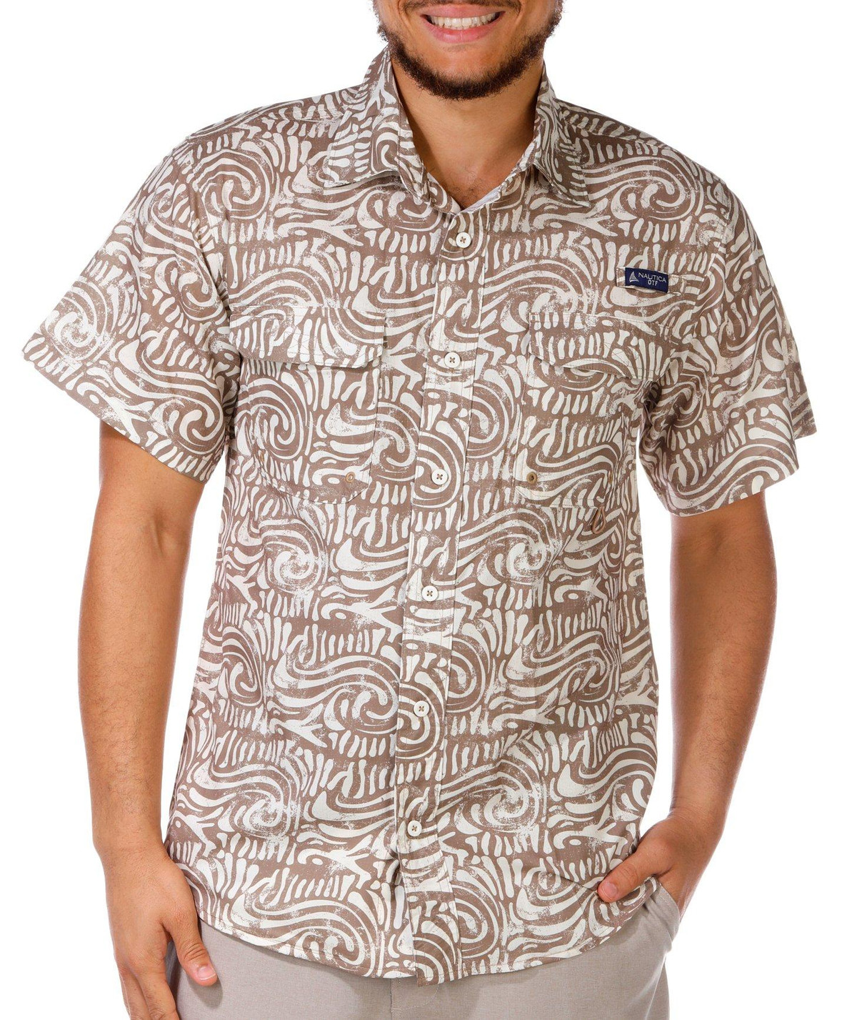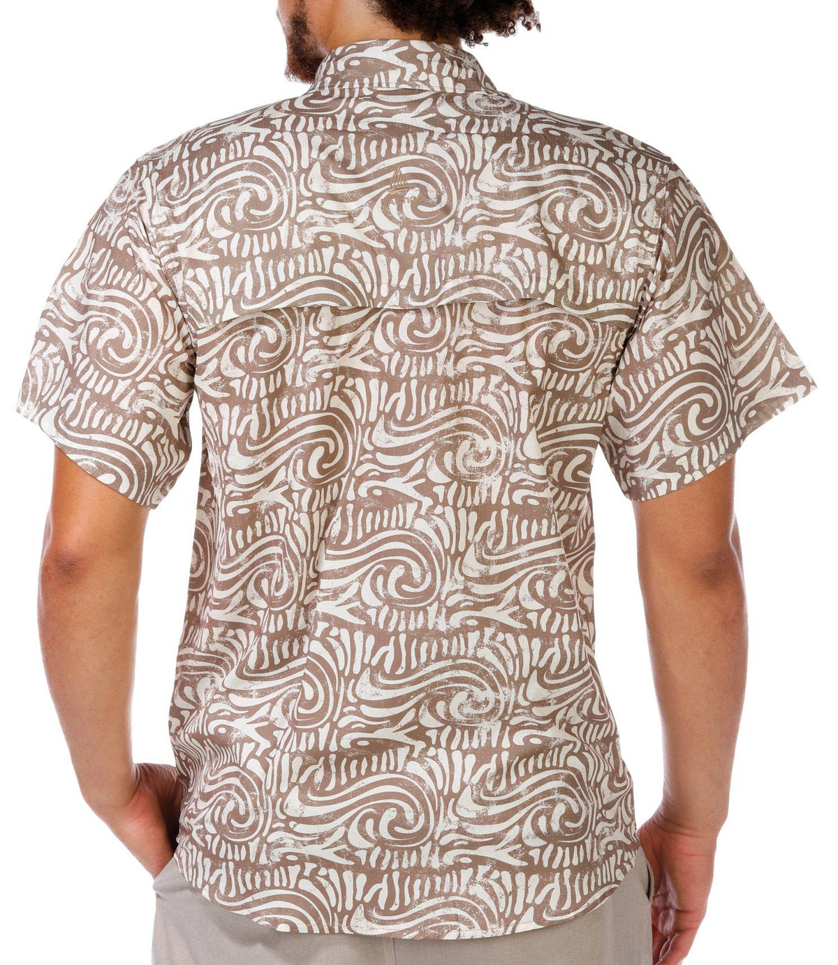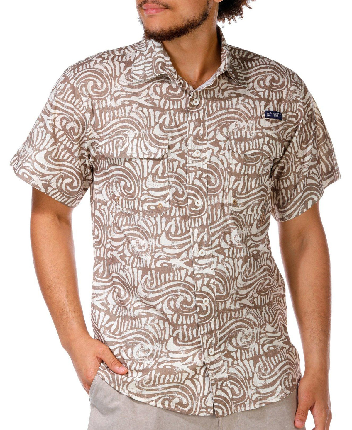 Adventure-ready and sustainably made, this short sleeve shirt features a bold print pattern, breathable woven fabric, and built-in sun protection. Moisture-wicking tech, vented design, and double chest pockets deliver comfort and utility from trail to town.