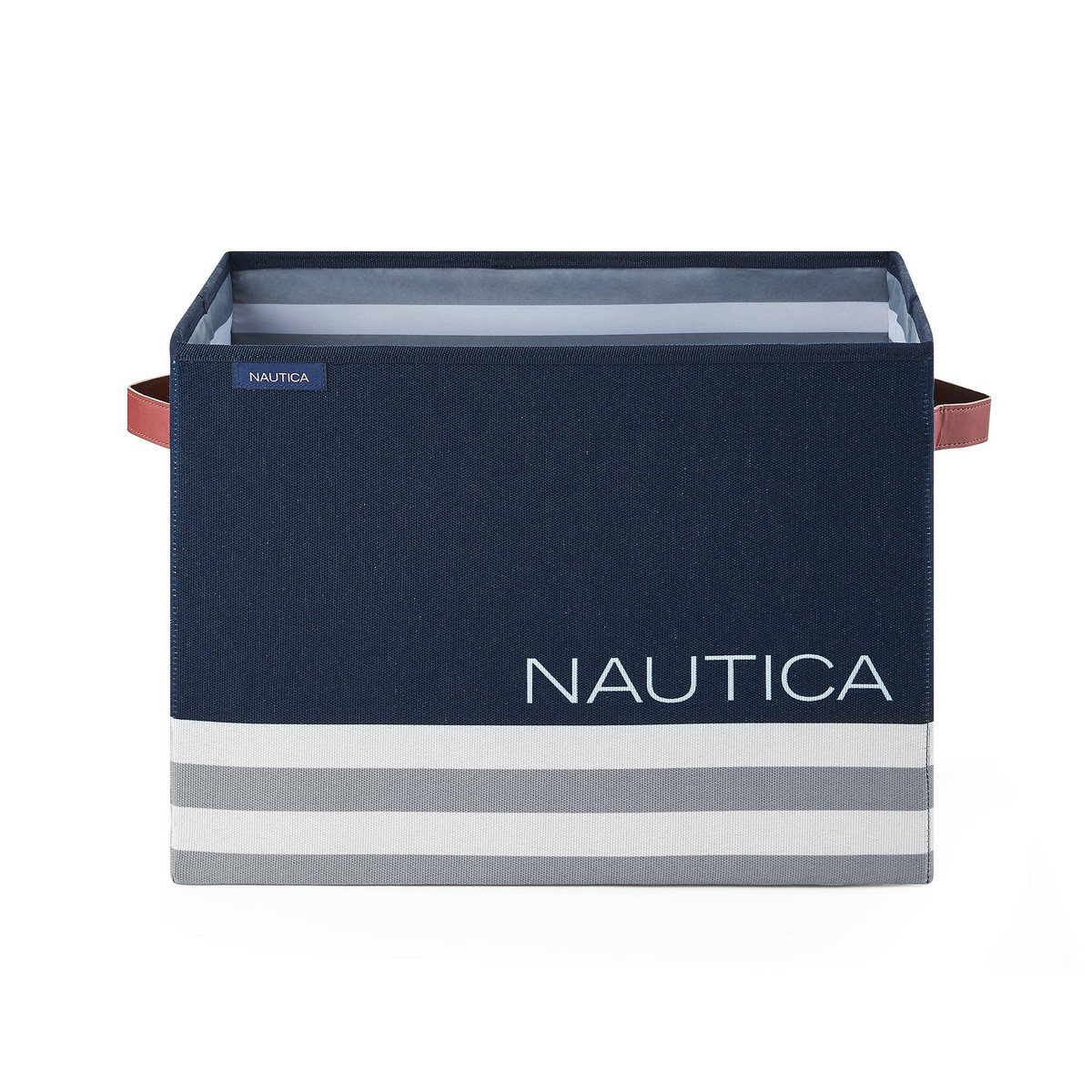 This Nautica Foldable Rectangle Storage Bin offers a stylish storage solution to effortlessly elevate any space in your home. The durable handles make it easy to transport while the convenient collapsible design makes this storage bin easy to store when not in use. This lightweight Nautica storage bin features a timeless stripe design that will blend in beautifully to almost any décor. Easy to clean. Measures 16 in. x 10 in. 12 in.