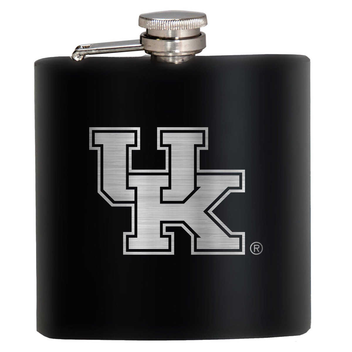 Show your team spirit! This Kentucky Wildcats Stealth Hip Flask, made of kitchen-grade 18/8 stainless steel, holds 6 fluid ounces. It is powder-coated in a black matte finish and features laser-etched team graphics. Measures 3.75 in. x 1 in. x 4.25 in.