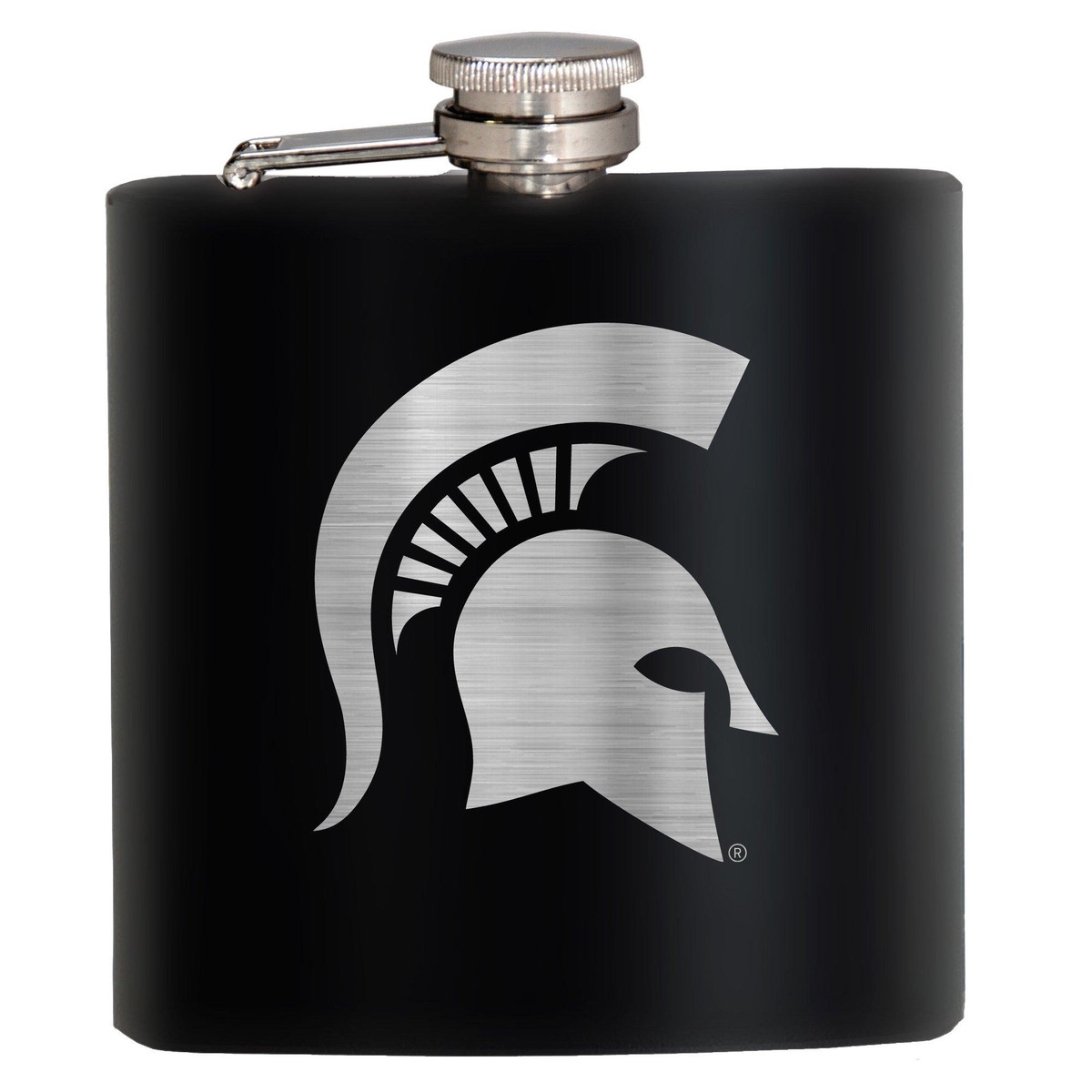 Show your team spirit! This Michigan State Spartans Stealth Hip Flask, made of kitchen-grade 18/8 stainless steel, holds 6 fluid ounces. It is powder-coated in a black matte finish and features laser-etched team graphics. Measures 3.75 in. x 1 in. x 4.25 in.