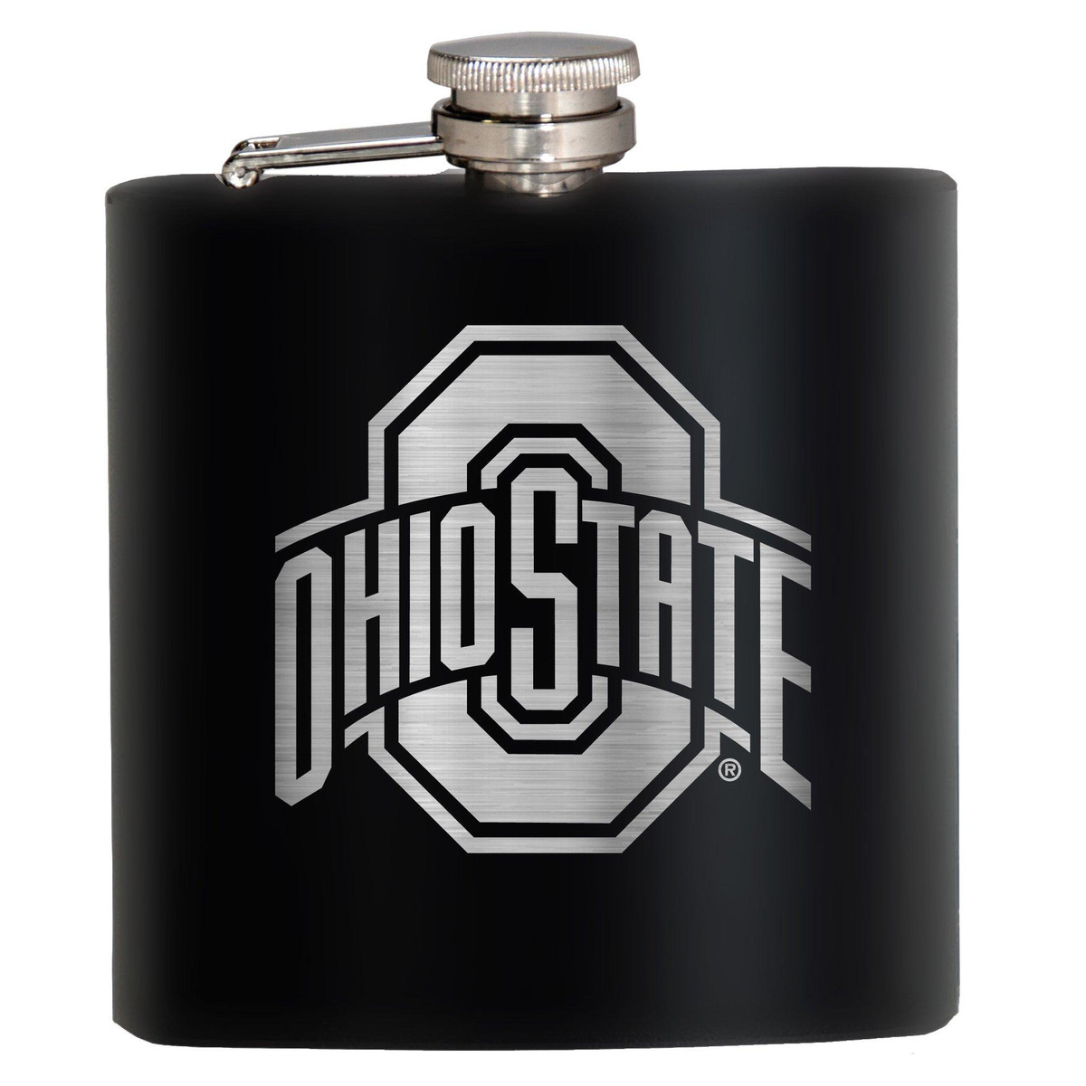 Show your team spirit! This Ohio State Buckeyes Stealth Hip Flask, made of kitchen-grade 18/8 stainless steel, holds 6 fluid ounces. It is powder-coated in a black matte finish and features laser-etched team graphics. Measures 3.75 in. x 1 in. x 4.25 in.