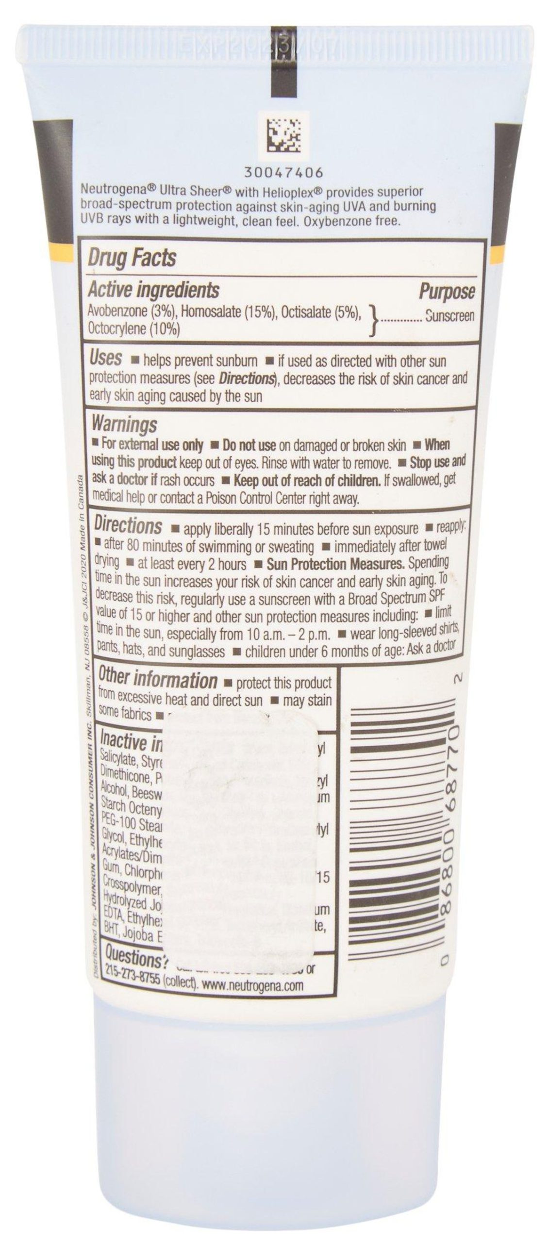Get ready for your next adventure in the sun with this Ultra Sheer Sunscreen from Neutrogena! It features a lightweight clean feel and oxybenzone-free formula, as well as SPF 70 broad spectrum protection. Contains 3 FL. OZ.