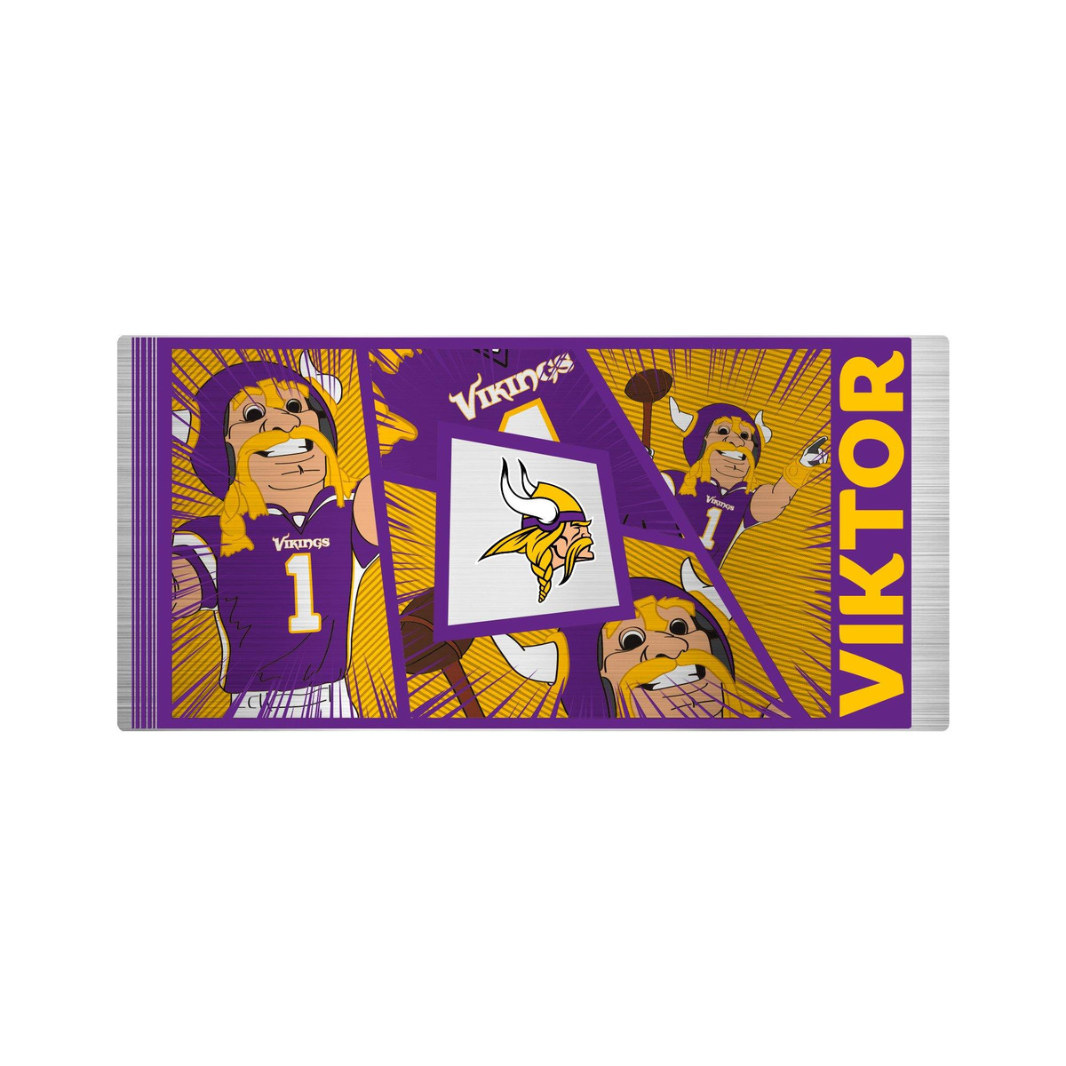 Show your team spirit! This Minnesota Vikings Mini Thirst water bottle is double-walled and vacuum-insulated and holds 16 fluid ounces. It features is a 360-degree wrap featuring team mascots. Measures 2.8 in. x 3.8 in. x 7.5 in.