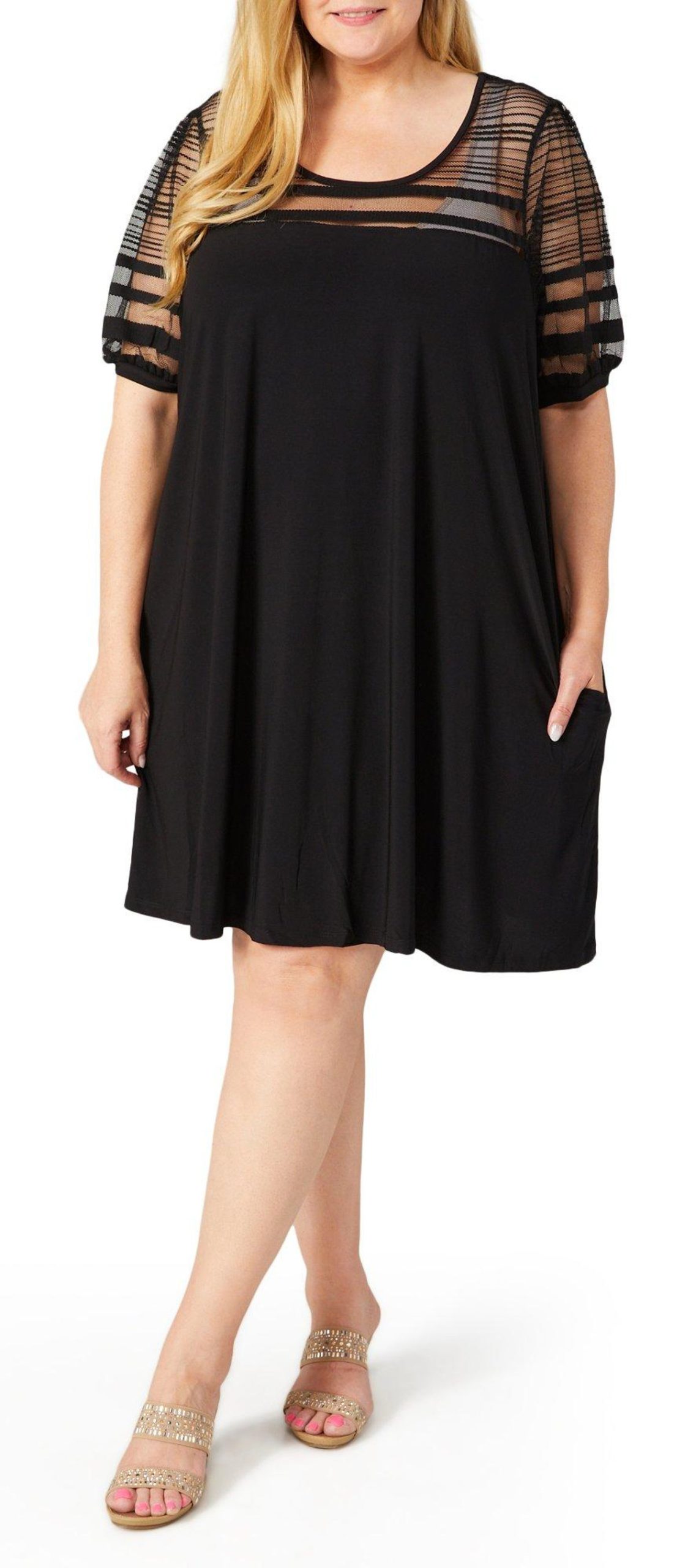 Step into contemporary elegance with this Short Sleeve Dress. Featuring stylish mesh accents and double side slip pockets, this knee-length dress combines practicality with modern flair. The lightweight fabric ensures comfort and ease, making it perfect for any occasion. Whether you’re dressing up for a special event or keeping it casual, this dress offers a versatile look that can be easily accessorized to suit your personal style. Fabrication is 95% polyester, 5% spandex.