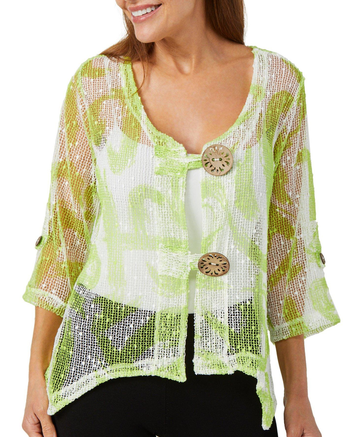 Nina Leonard Womens 3/4 Sleeve Coconut Button Print Shrug