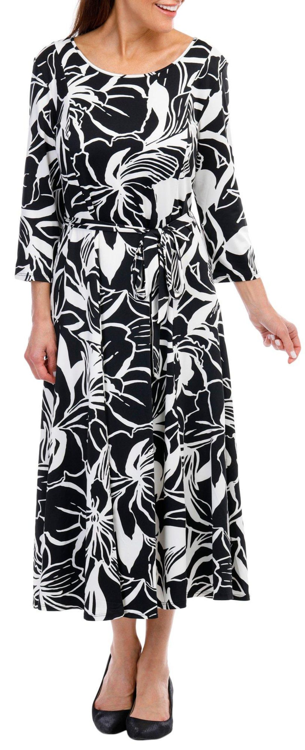 Introducing the Women’s 3/4 Sleeve Sylvia Midi Dress, crafted from a comfortable blend of polyester and spandex. This chic dress features a stylish print pattern, a flattering waist tie, and a classic round neckline. Its midi length offers a perfect balance of elegance and ease, making it a versatile addition to any wardrobe. Ideal for both casual outings and special occasions, the Sylvia Midi Dress is designed to make you look and feel fabulous.